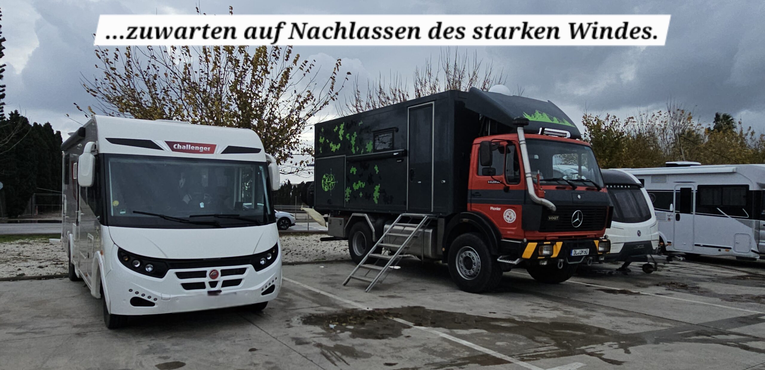 Mit starkem Regen und heftigem Wind beginnt der Tag. So war es zu erwarten und ich kaufe im Carrefour nochmals ein paar Kleinigkeiten – jetzt habe ich wirklich alles erledigt. Ein bisschen schmökern und mich die voraussichtliche Route bis Ende Monat in Marokko ein einlesen ist die heutige Hauptbeschäftigung.