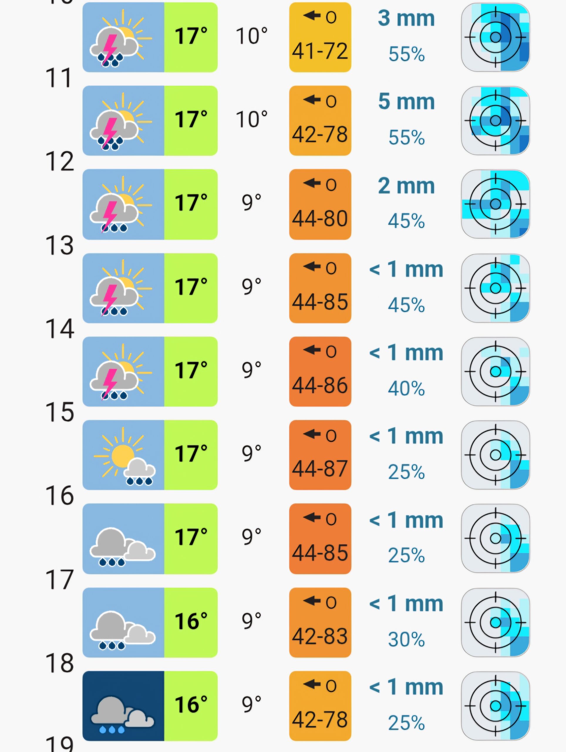 Wetter: in der Früh Regen und sehr starker Wind, ab dem Vormittag trocken aber keine Sonne.
