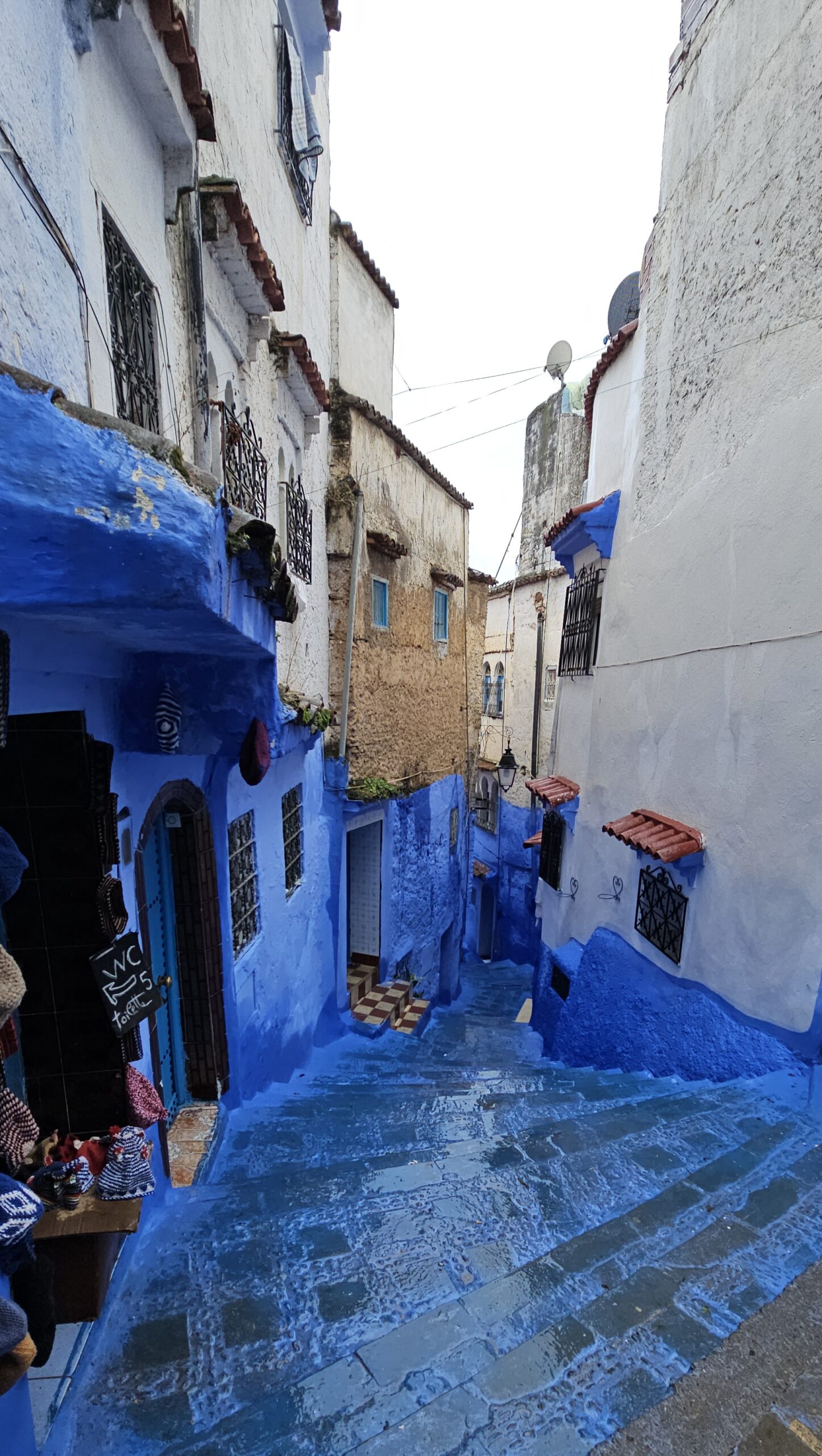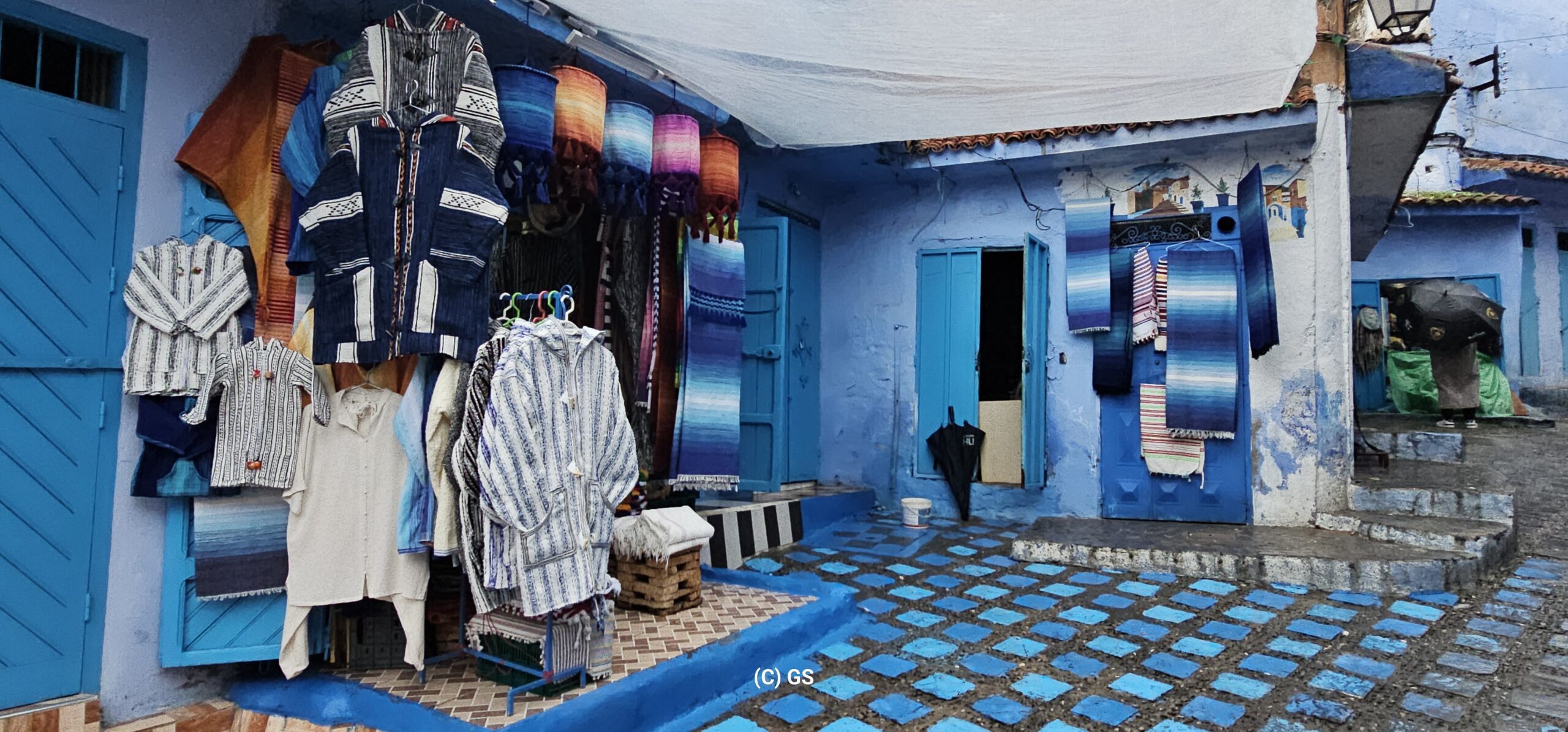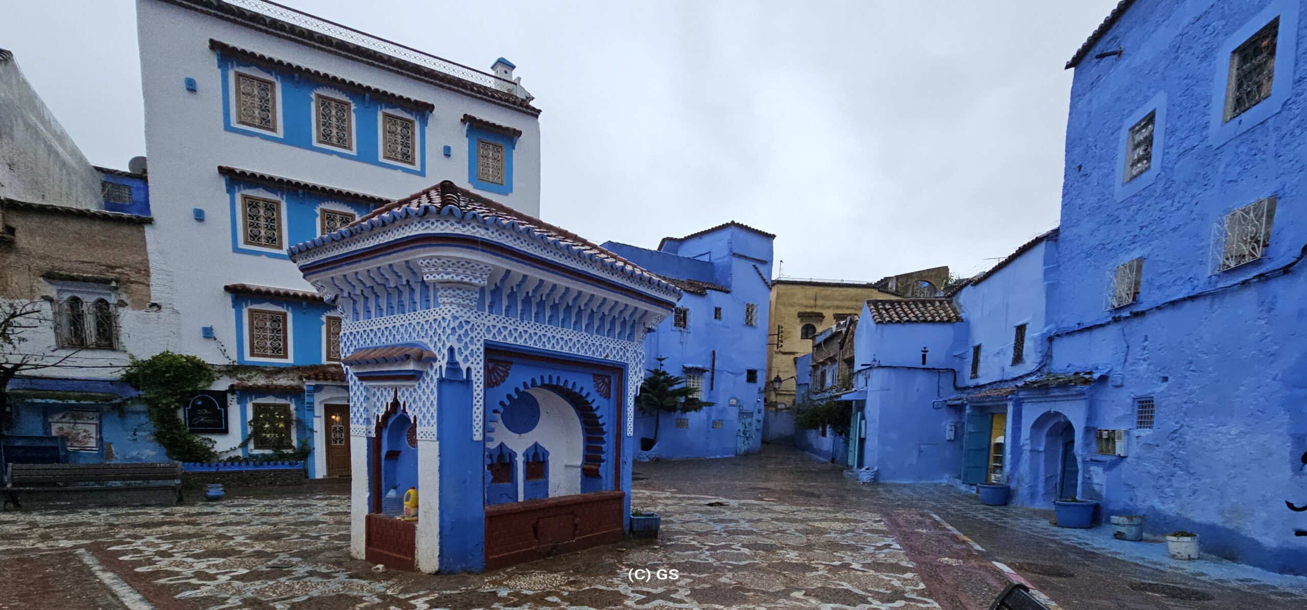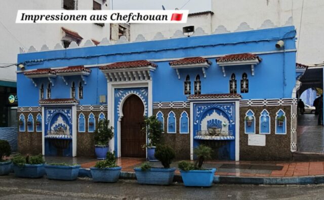 Die Runde durch die Medina ist sehr interessant, leider hat das ethnographische Museum geschlossen, das wäre sicher sehr interessant gewesen. Nach 3 Stunden bin ich wieder zurück beim Fahrzeug und checke nochmals die Wettervorhersagen, da die Wetterkapriolen derzeit in Teilen Marokkos verheerende Schäden mit vielen Toten verursacht haben. Ich bin glücklicherweise nicht an der Atlantikküste sondern im nordöstlichen Teil unterwegs, wo ich besser vom Sturm und Starkregen geschützt bin. In meinem nächsten Ziel, der „Blauen Perle“ und UNESCO-Stadt Chefchaouen, einem der Top-10-Ziele in Marokko, hat sich das Wetter auch wieder auf normale Werte gebessert. Ich starte die Fahrt und es beginnt wieder heftig zu schütten. Die Route ist kurvig, hinauf und hinunter, aber auf durchwegs guten Straßen. Hier parke ich auf einem zentralen und überwachten Parkplatz. Als erstes gehe ich zu El Barid Bank um wieder den Versuch zu machen, Bargeld abzuheben. Und siehe da – es klappt. Vermutlich hatte der Bankomat in Tetouan eine Fehlfunktion gehabt.