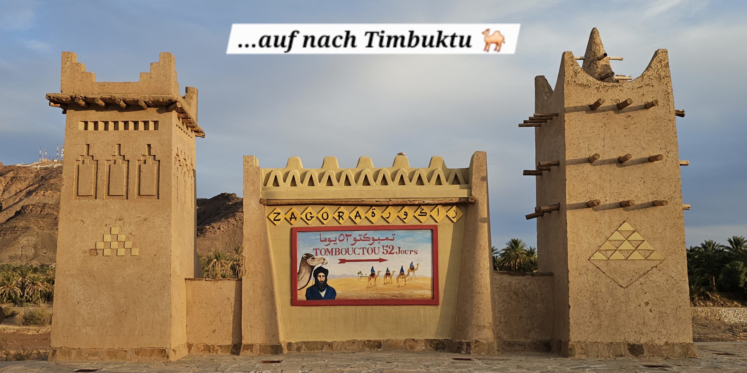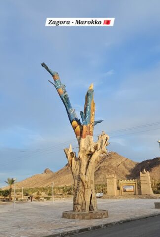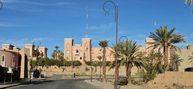 Zagora war ein Kontenpunkt der Kamelkarawanen nach Timbuktu. Bis zu 5.000 (!!) Kamele waren zu den besten Zeiten in einer Karawane – eine logistische Meisterleistung. Durchschnittlich dauerte es von hier 52 Tage, bis Timbuktu erreicht worden ist… Nach dem Frühstück fahre ich noch in die Stadt, die sehr sauber und modern ist. Auch die Disziplin auf der Straße ist recht gut, was sehr angenehm ist.