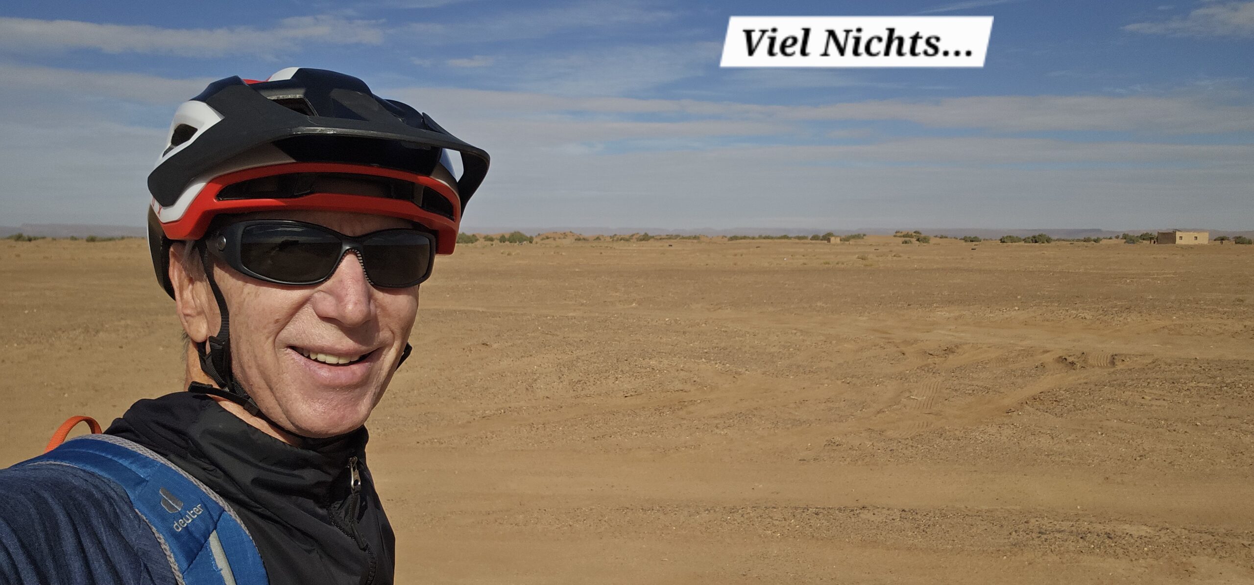 Dann fahre ich zurück und bin froh, wieder auf Asphalt zu sein. Die Sand- und Rüttelpiste ist nicht einfach zu befahren. Ich bike gut 7 Kilometer in die andere Richtung, schaue mir einzelne Plätze an und drehe dann wieder um.