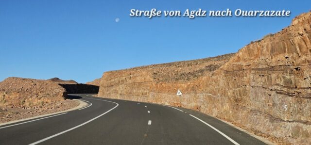Doch Eines nach dem Anderen: die Straße von Agdz zur Filmstadt Ouarzazate ist sehr gut, ein perfekter Belag und eine tolle Streckenführung über einen 1.700 m hohen Pass. Der Weg ist das Ziel – so auch auf dieser fantastischen Strecke. Nach meiner Ankunft suche ich zuerst ein Elektrogeschäft auf, um einen Spannungsstabilisator zu kaufen. Es hat in Marokko, wenn man am Landstrom angeschlossen ist, häufig Über- und Unterspannung und dies kann elektrischen Geräten Schaden zufügen. Schon gestern habe ich mir in Agdz eines anbieten lassen, aber der wollte 120 Euro. Heute habe ich genau das gleiche hier um 62 Euro bekommen.