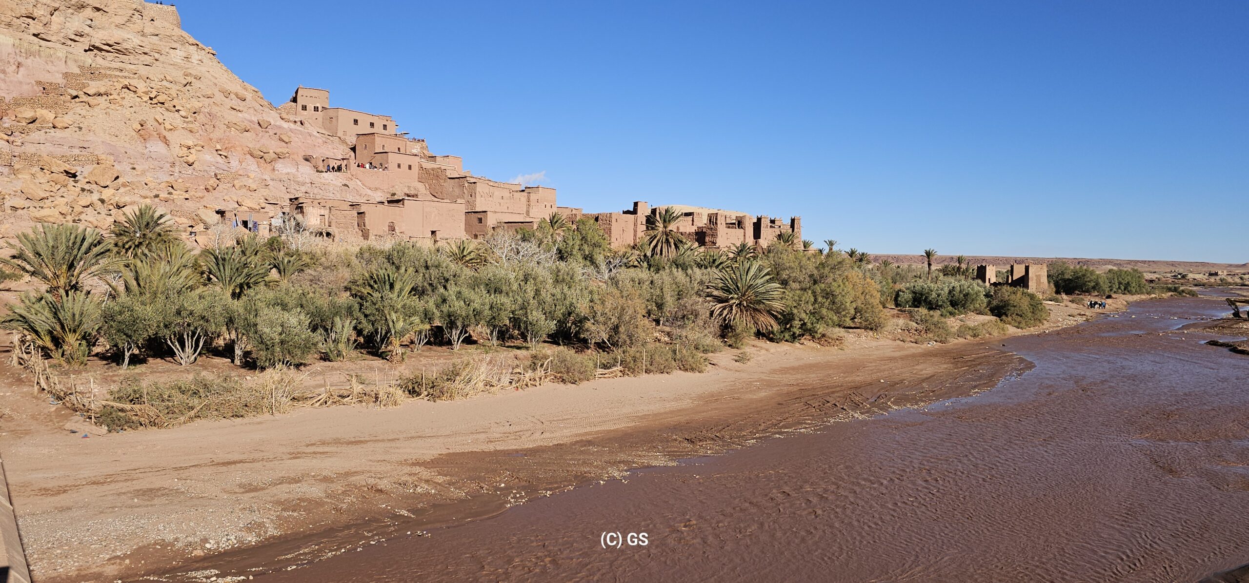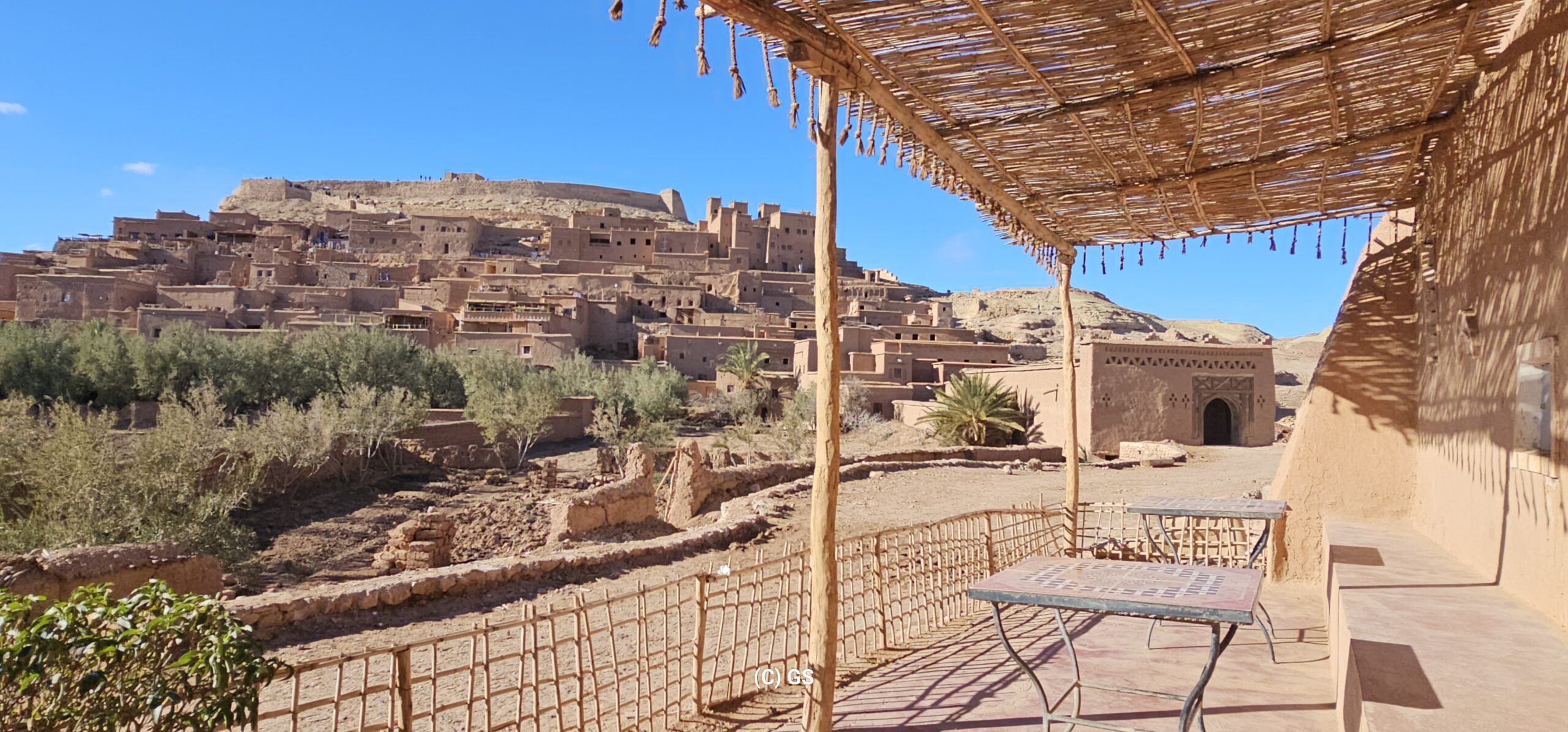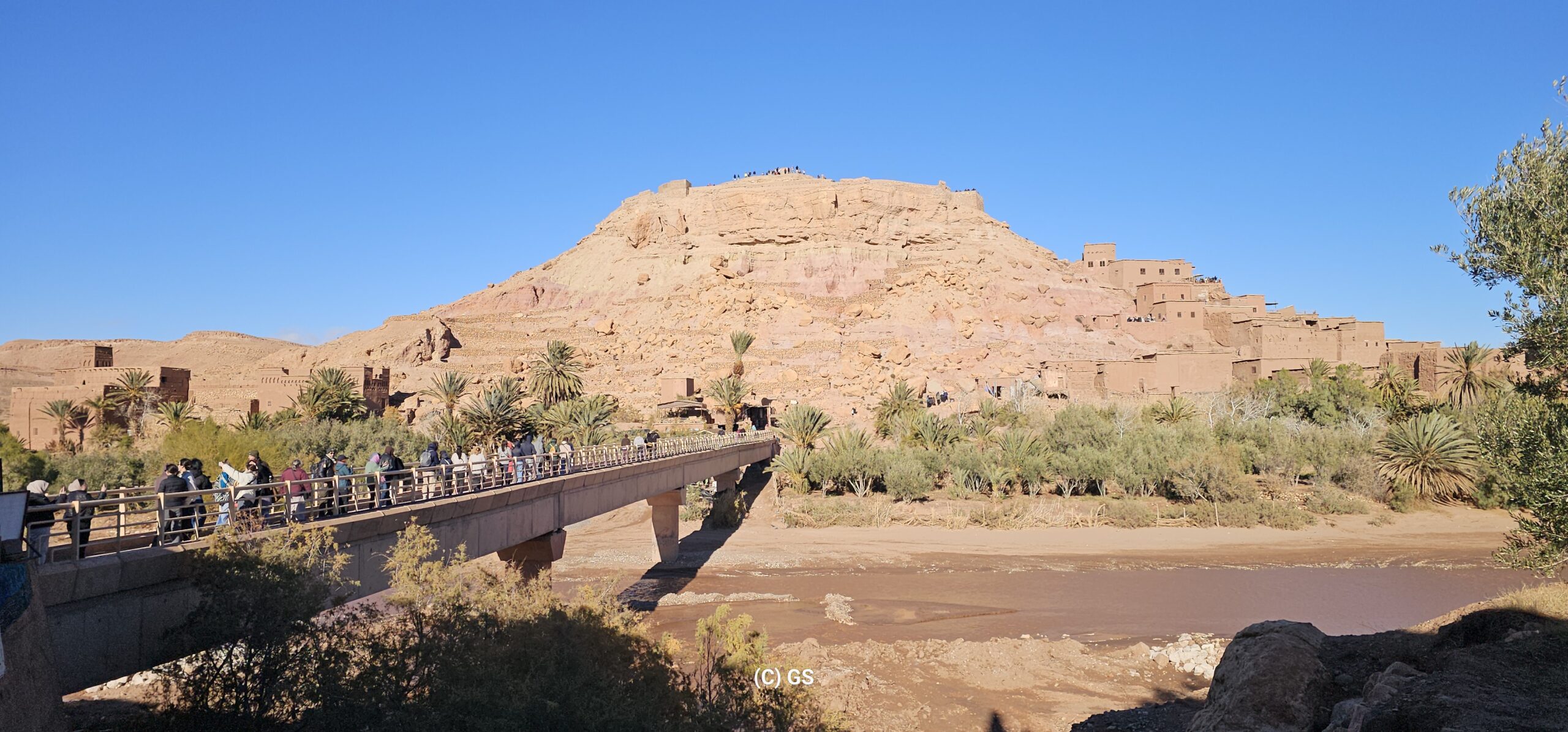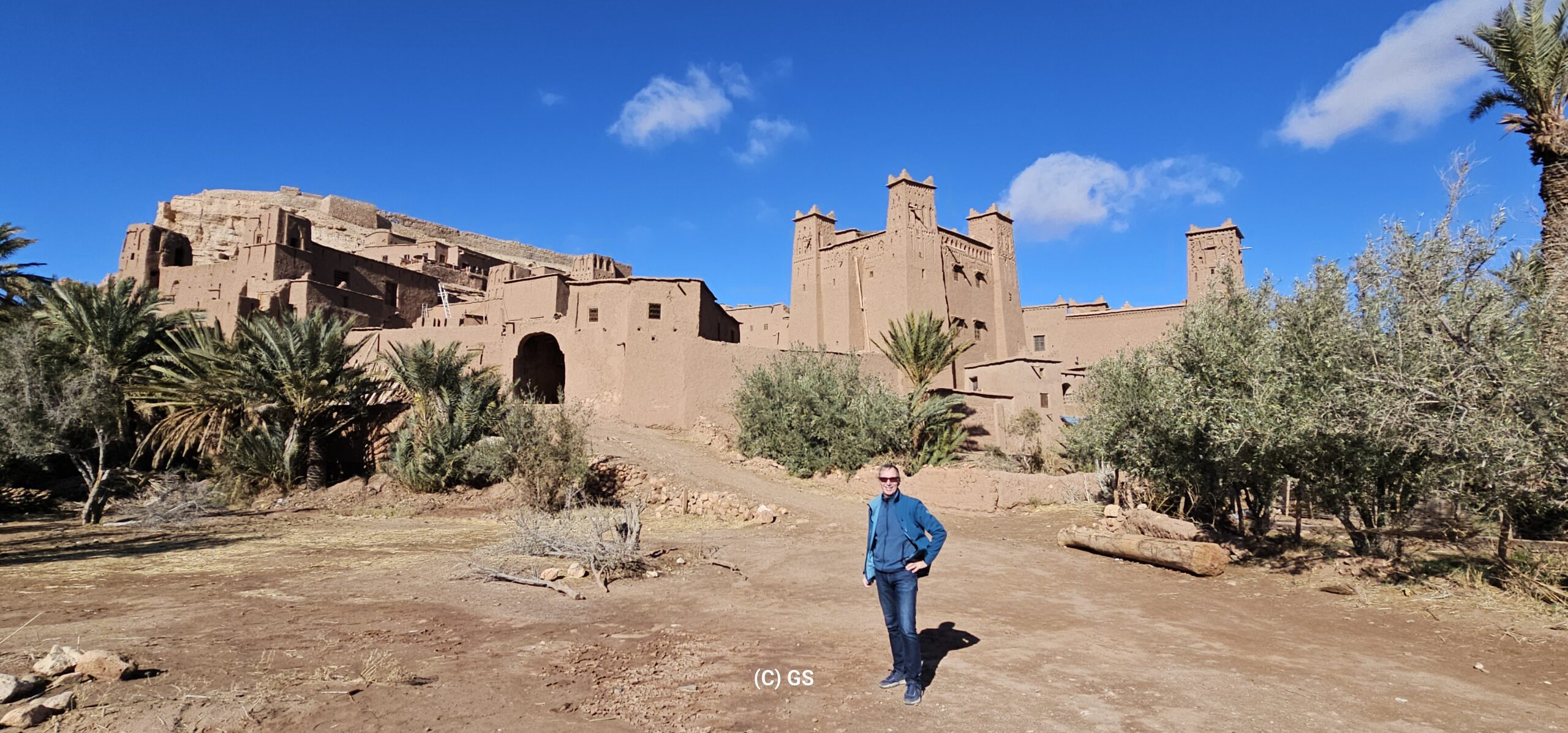 Dann fahre ich weiter nach Ait-Ben-Haddou, einem der Haupt-Drehorte dieser Filme. Hier steht ein historisches Lehm-Dorf (Ksar) , bekannt für deine einzigartige Architektur. Es ist seit 1987 UNESCO-Weltkulturerbe und diente als wichtiger Karawanen-Stopp zwischen Marrakech und der Sahara.