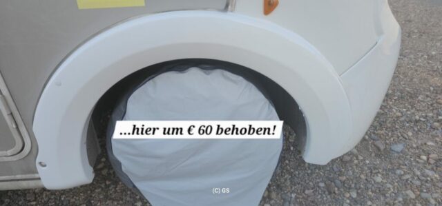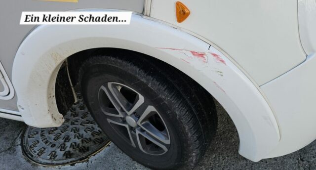 Ein Lackierer geht vorbei und frägt mich, ob ich den kleinen Schaden an der Kotflügelverbreiterung meinem WM beheben lassen möchte. Er möchte € 80, aber wir einigen uns dann auf € 60. Bei uns hätte es rund € 1.000 gekostet und mein Kasko-Selbstbehalt wäre bei € 300 gewesen. Er macht in kurzer Zeit einen guten Job und ich bin damit sehr zufrieden.