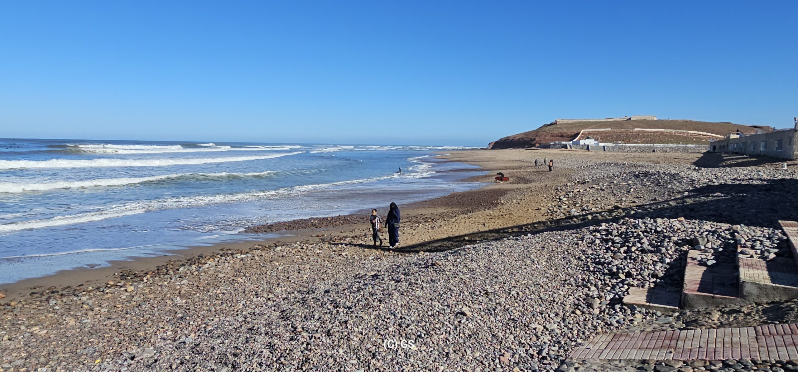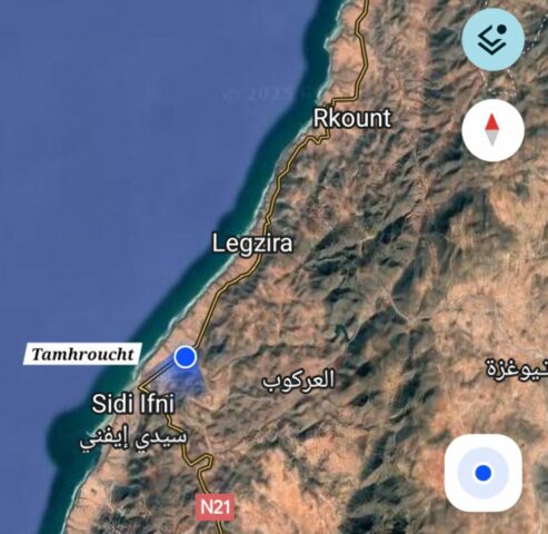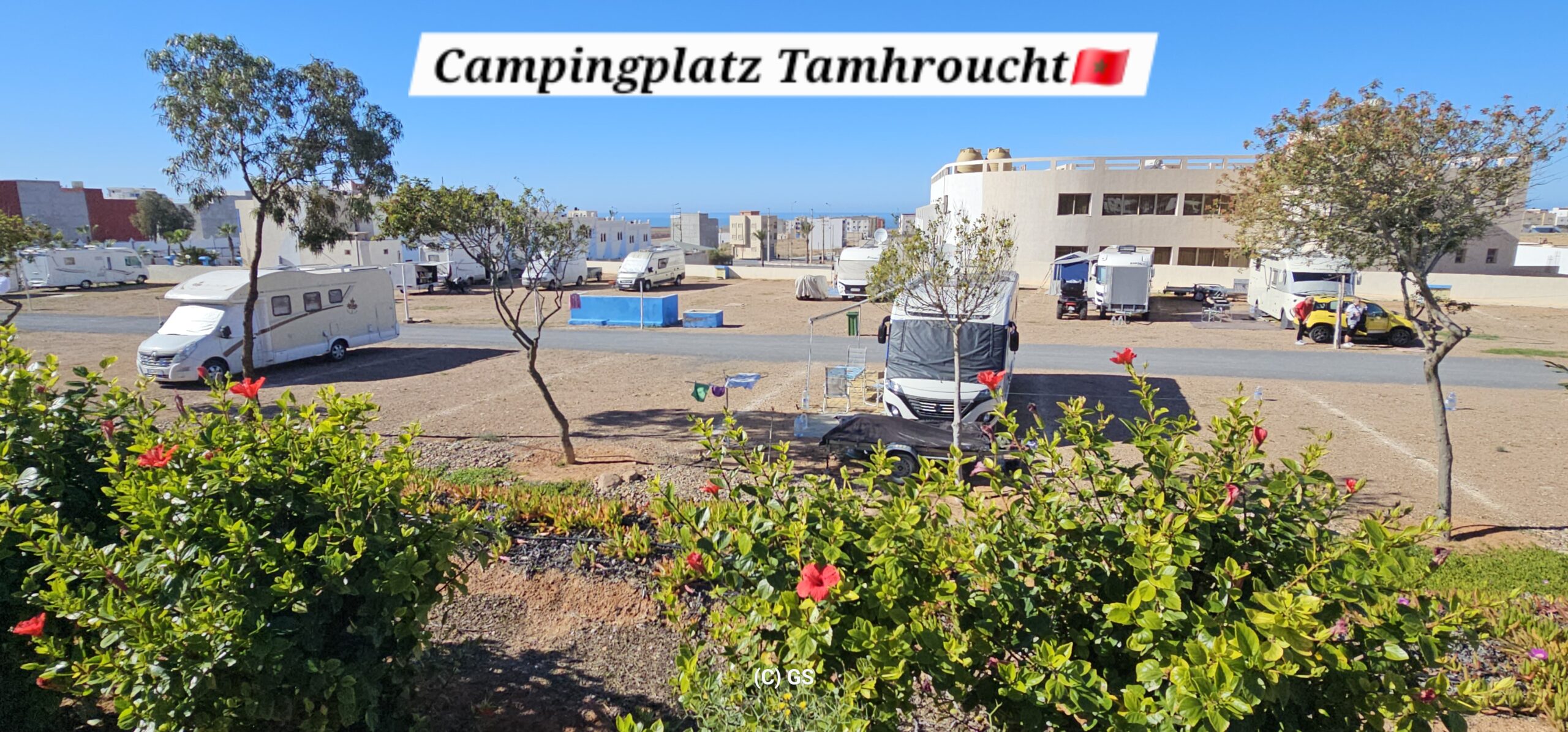 Nach ca. 1 Stunde bin ich in Sidi Ifni und parke dort vor einem Campingplatz direkt am Meer. Ich spaziere eine Runde, schaue mir 3 Plätze an aber die gefallen mir nicht. Die Wahrzeuge stehen sehr eng und es ist staubig – keine Wohlfühlatmosphäre. Ich fahre dann noch in den Ort wo es einen Freisteherplatz gibt, aber dort ist jetzt eine Baustelle. Ich lasse den großen Markt, welcher hier am Sonntag stattfindet, links liegen und fahre weiter nach Tamhroucht. Hier ist ein schöner Campingplatz und es hat genügend Platz mit freier Wahl. Die Nacht kostet inkl. Strom € 6,50. Ich stelle mein WM neben einen Schweizer aus dem Thurgau, der einen großen Concorde Cruiser hat. So was würde mich auch gefallen…. Er erzählt mir, dass er und seine Frau das Haus in der Schweiz verkauft haben und nun ganzjährig auf Reisen sind – in der wärmeren Jahreszeit auch wieder zurück in der Heimat.