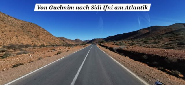 Im Supermarkt kaufe ich noch 2 Kleinigkeiten und fahre dann Richtung Sidi Ifni. Meine beiden Versuche, das Auto waschen zu lassen, scheitern leider. Kein Problem, die nächste Gelegenheit dazu kommt bestimmt bald.