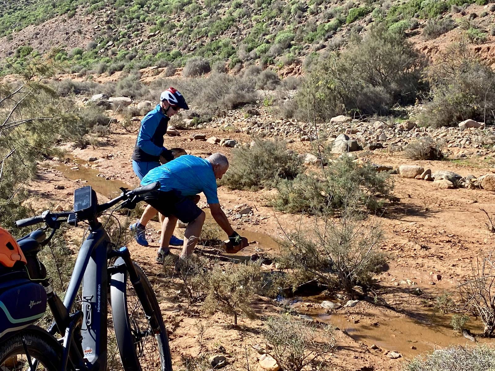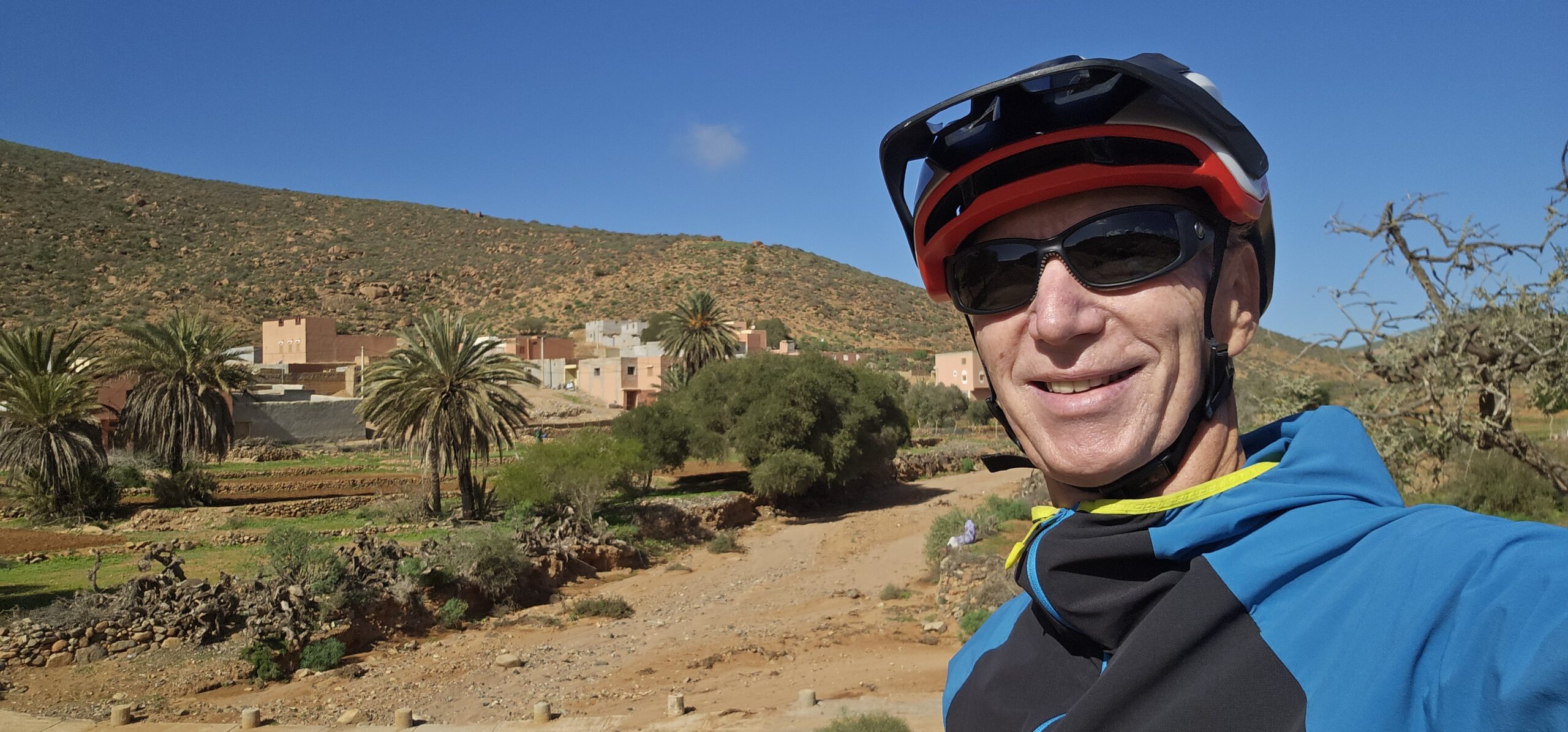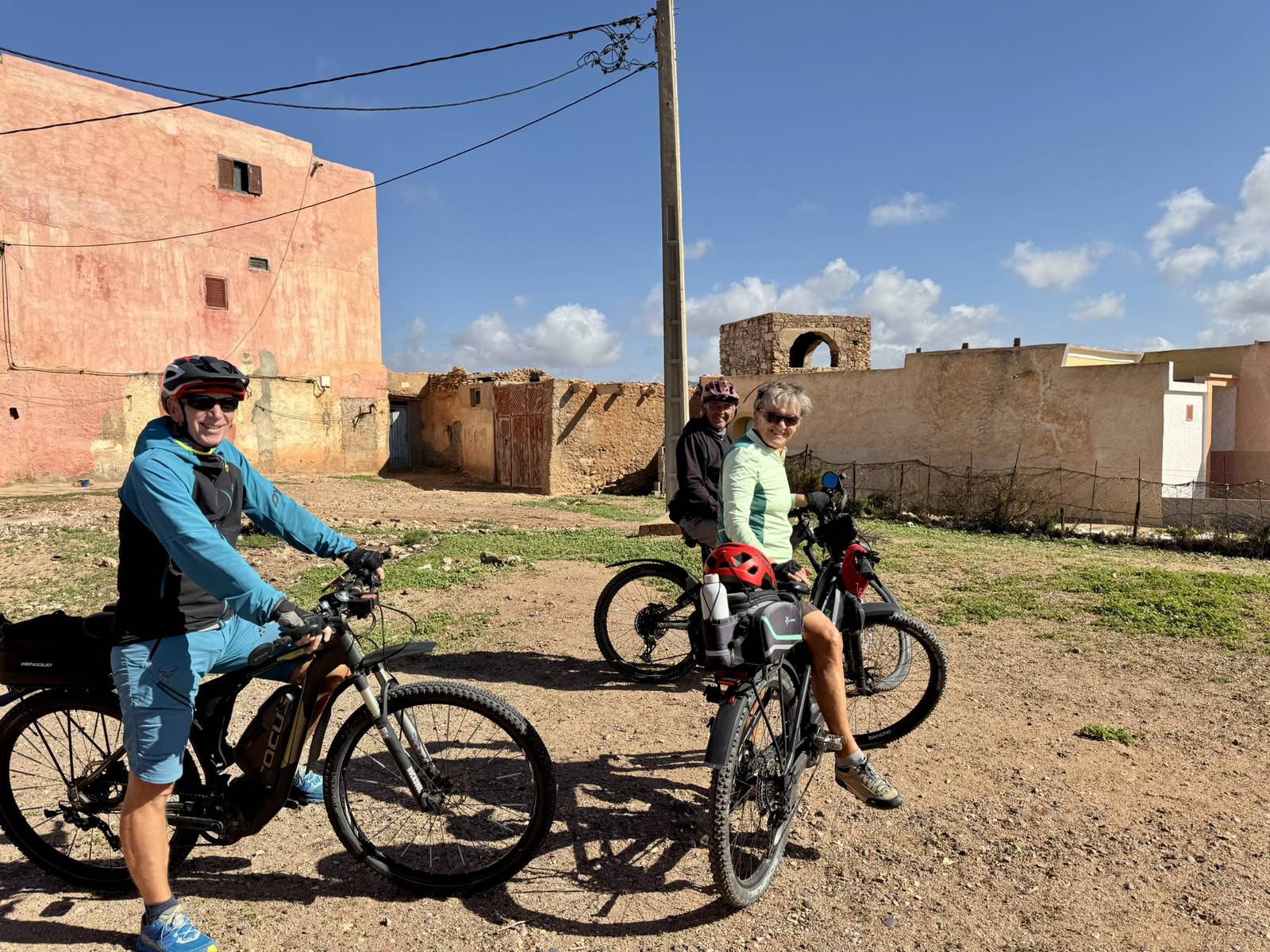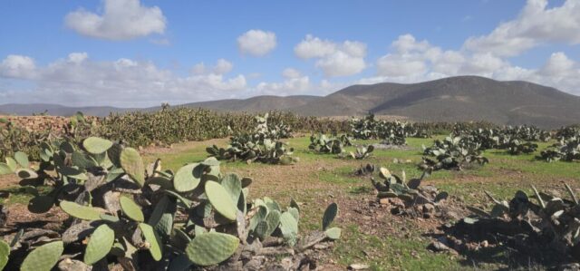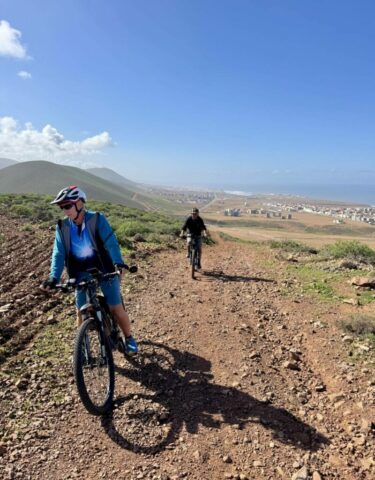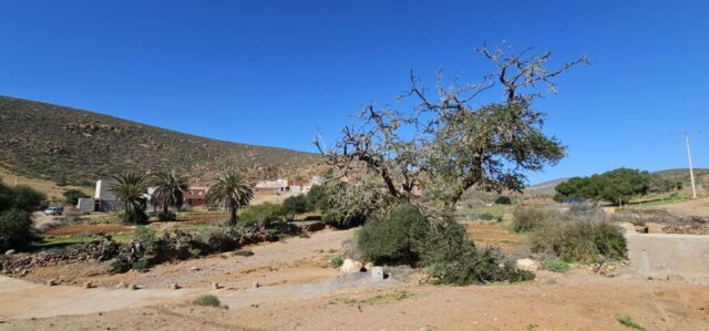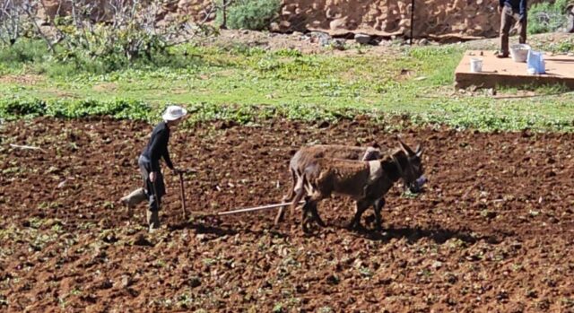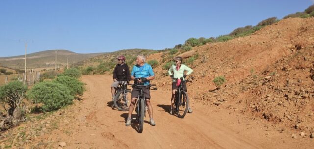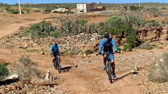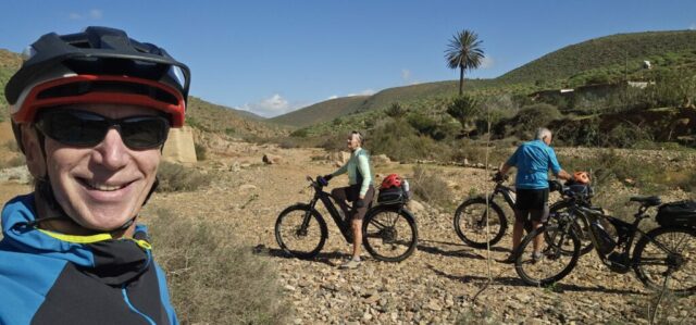 Ich lese mich am Vormittag ein bisschen bezüglich der weiteren Reiseroute ein. Um ca. 12:30 Uhr starten Toni, Annelies, Daniel und ich zu einer Mountainbike-Tour. Es geht bergauf und bergab, über „Stock und Stein“ auf einer sehr schönen und abwechslungsreichen Strecke durch die Hügel im Hinterland. Es ist sehr interessant, wie die Bauern versuchen, diesem doch sehr kargen Land einen Ertrag abzugewinnen. Derzeit ist es bedingt durch den reichlichen Regen in Marokko viel grüner als sonst und das hilft den Bauern sicherlich. Mit 2 Eseln wird ein einfacher Pflug gezogen und Kakteenplantagen sind vermehrt zu sehen. Aber auch Brunnen mit Solarpumpen machen einen Fortschritt für diese Bauern ersichtlich.