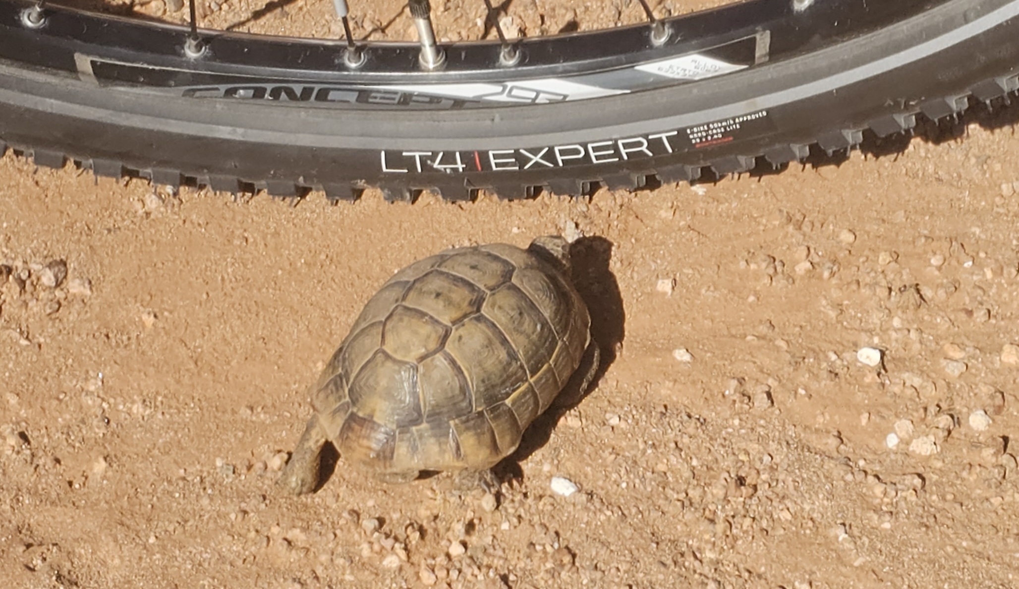 Dort wo eine Brücke gestanden ist, müssen wir das Flussbett durchqueren, was aber problemlos gelingt. Dann strampeln wir wieder hinauf bevor wir eine schöne Abfahrt zurück zum Ausgangspunkt haben.