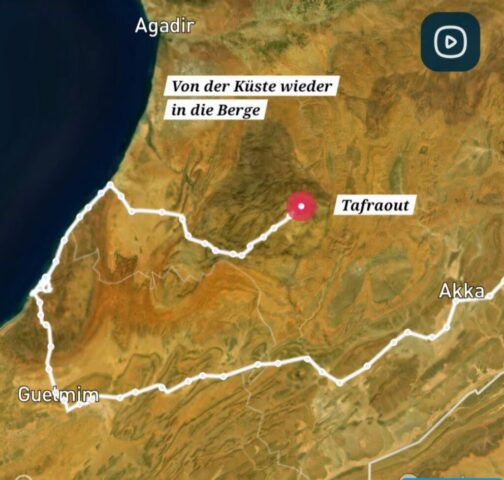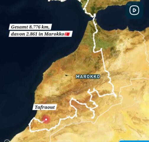192 Tageskilometer, 8.667 Gesamtkilometer (davon 2.861 in Marokko)