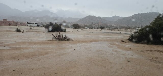 Wie vorhergesagt fängt es in der Nacht an zu regnen. Da bleibe ich gerne ein wenig länger im warmen Bett. Wenigstens ist es kein Starkregen und diese Intensität ist für diese trockene Region sicher sehr gut.