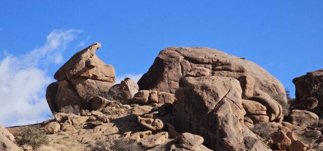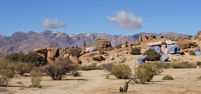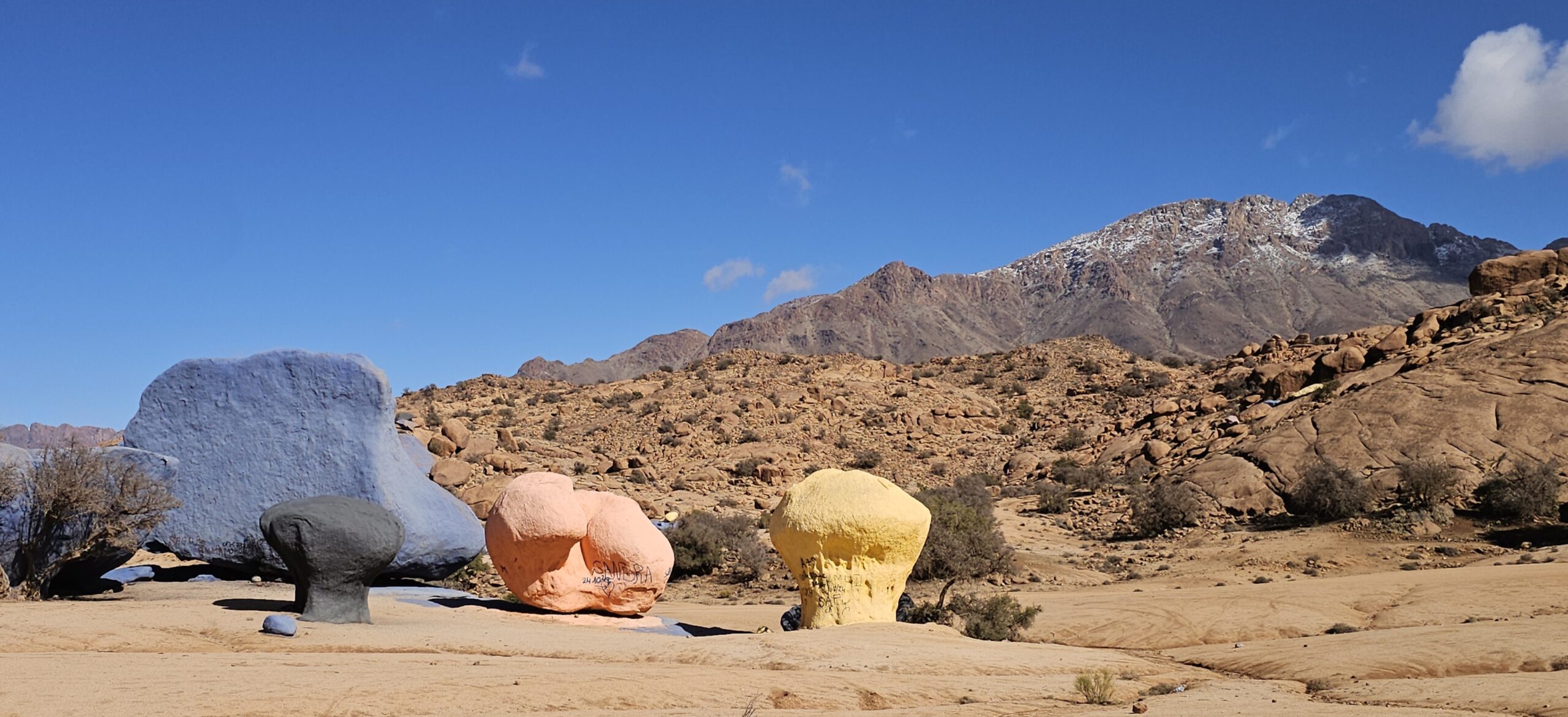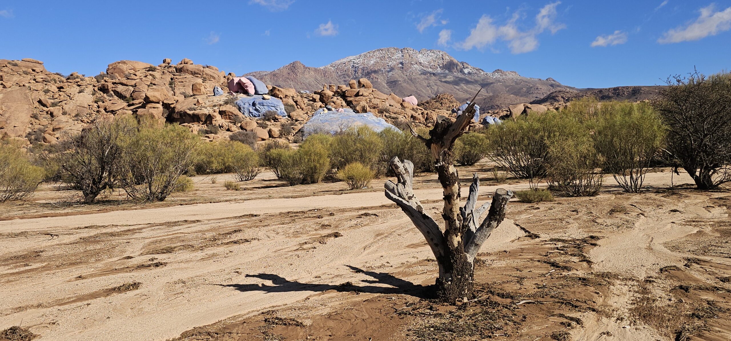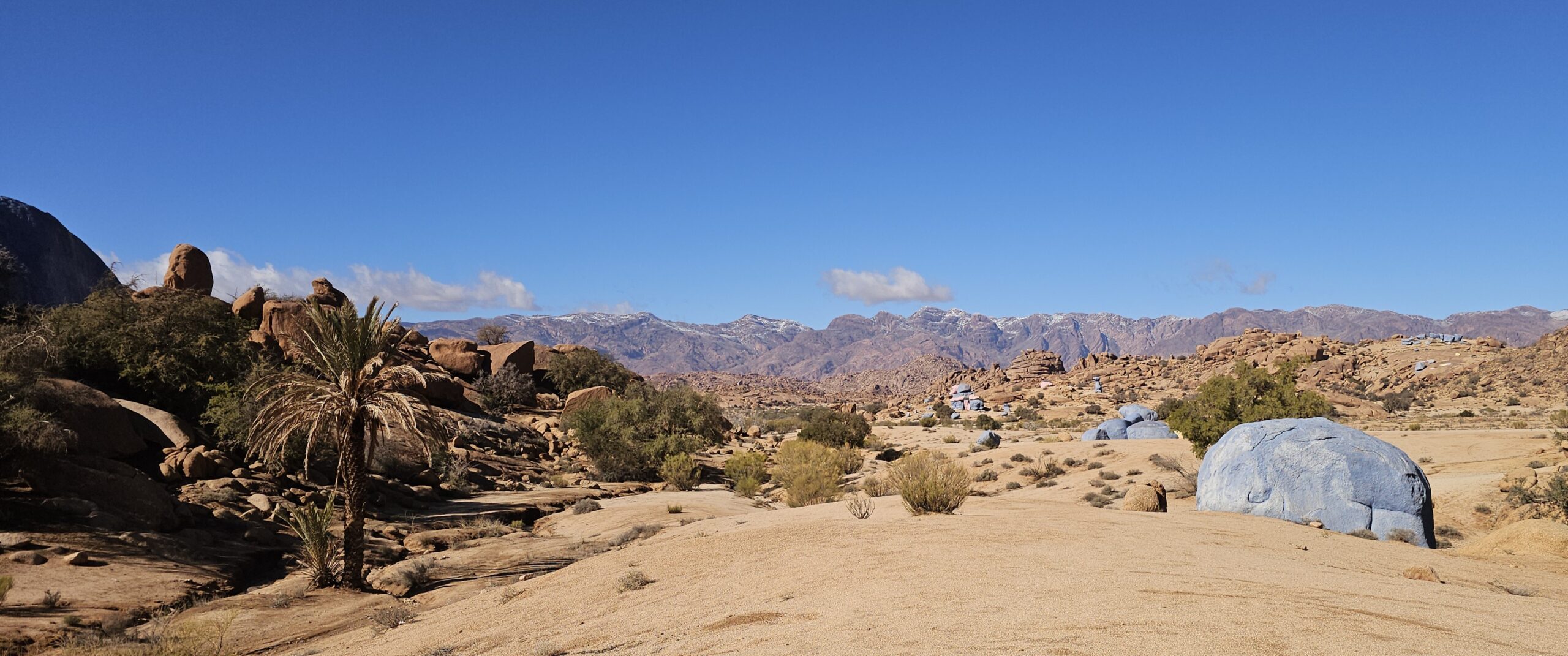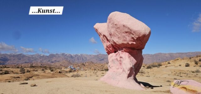 Dann komme ich bei den „Painted Rocks“ oder „Blauen Felsen“ an, die ein belgischer Künstler in den 1980iger Jahren angemalt hat. Später haben dann Einheimische andere Granitblöcke auch mit anderen Farben bemalt. Mal was anderes…!