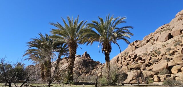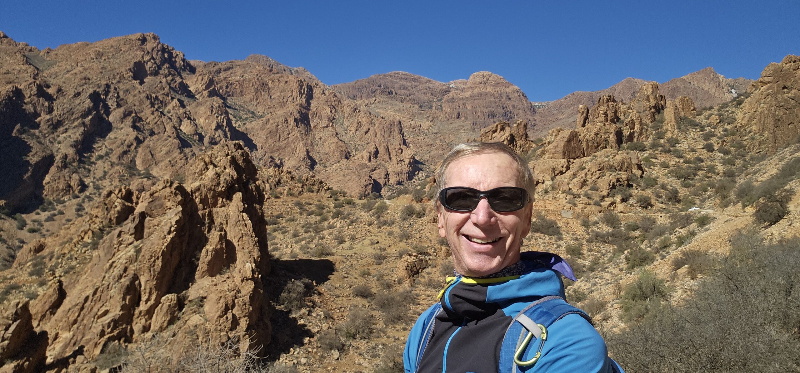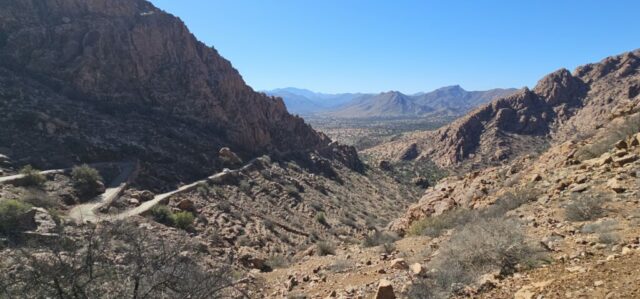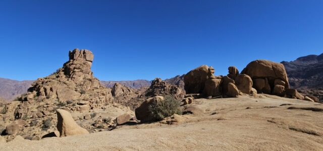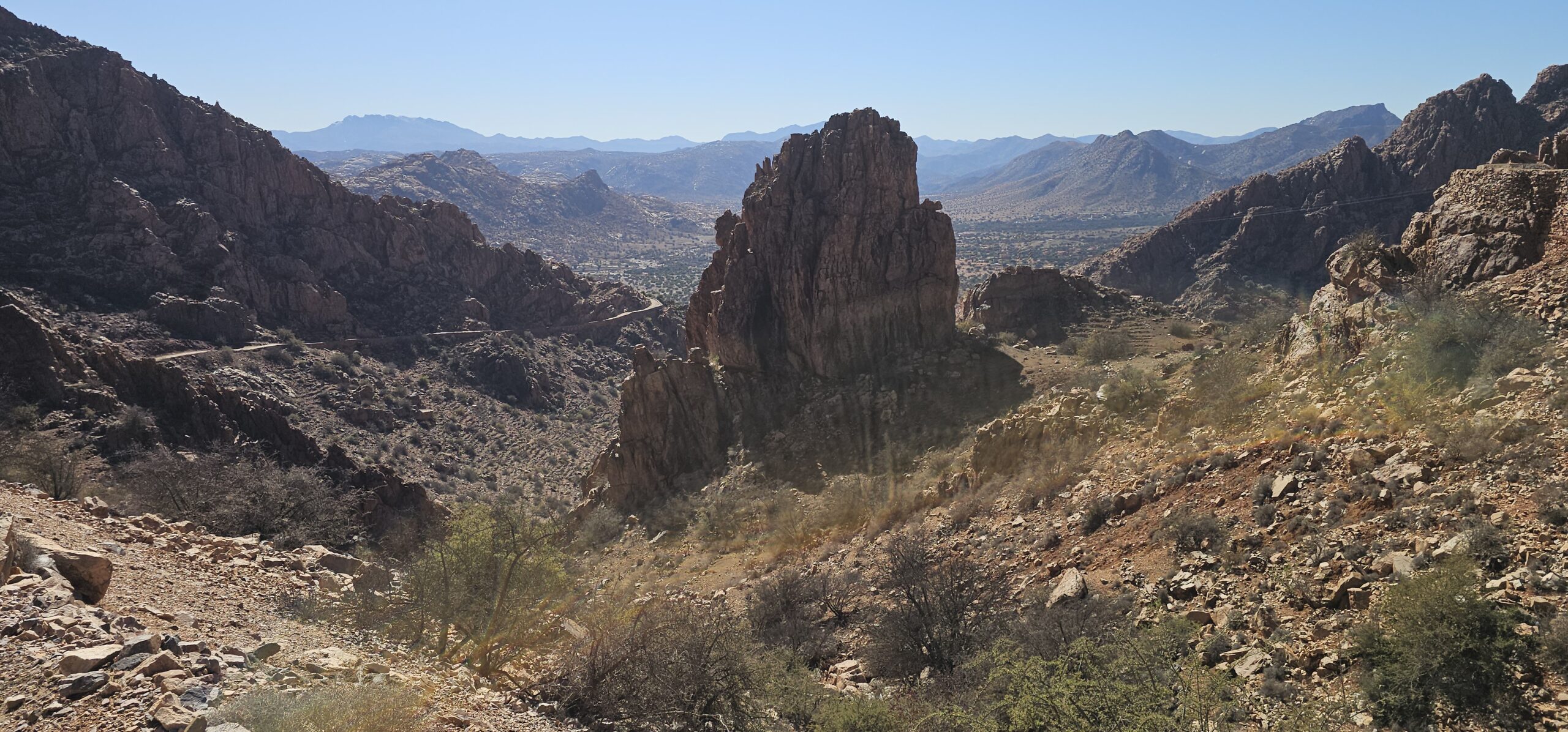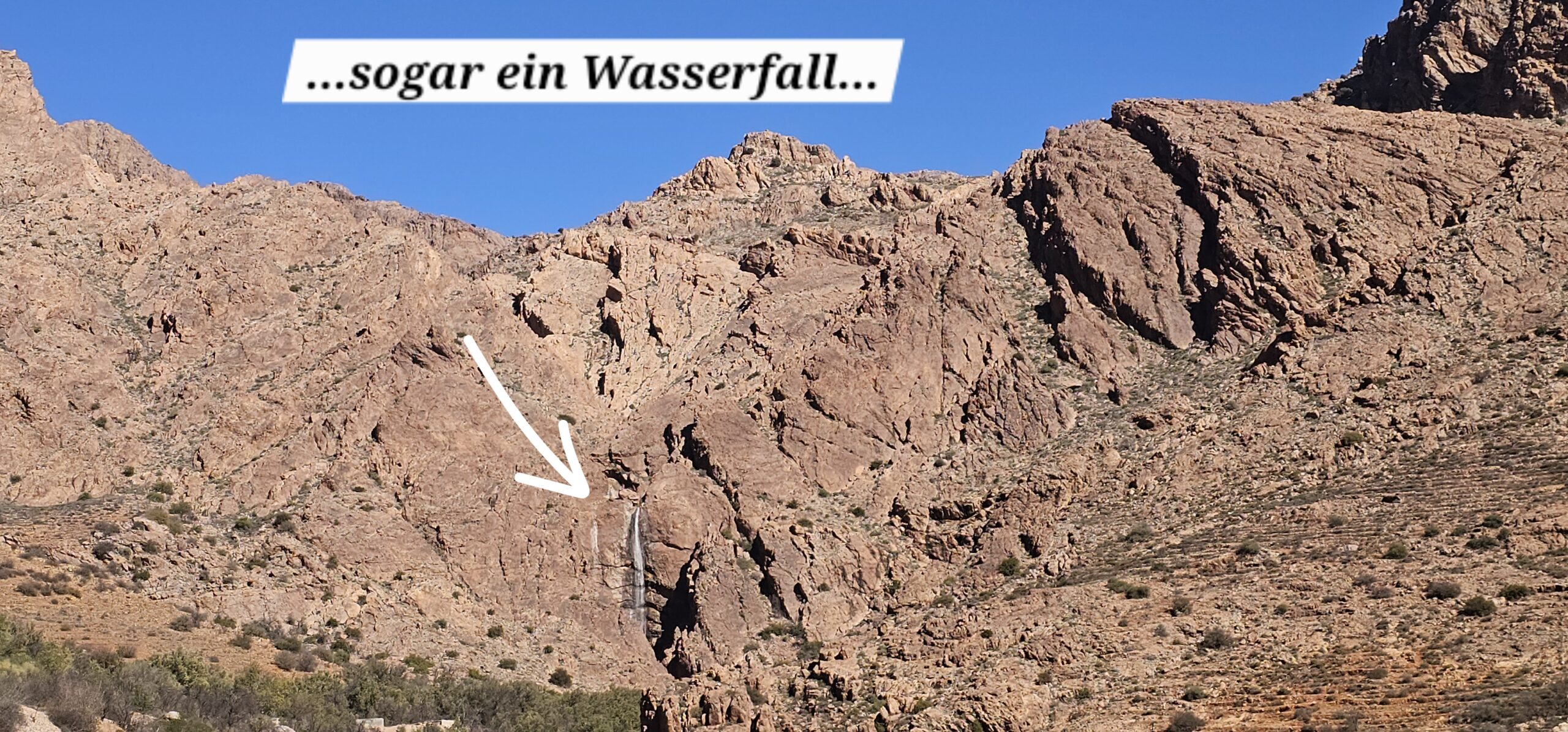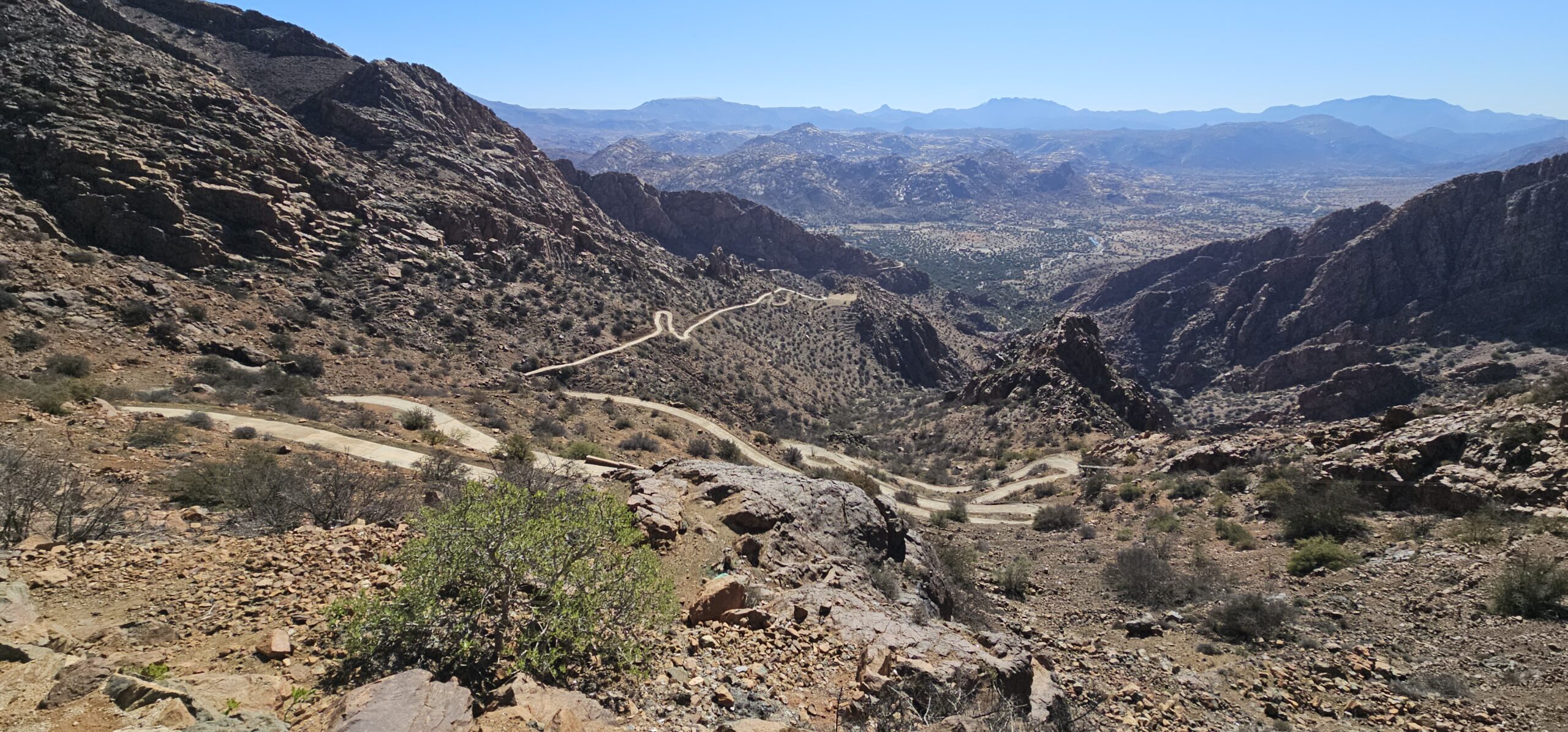 Dann rolle ich über die betonierte Straße wieder hinunter und anschließend strample hinauf nach Tafraout. Es ist angenehm warm und ich genieße vor dem Fahrzeug die herrliche Sonne.