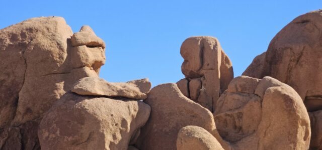 Ich starte so um ca. 11 Uhr zu meiner Fahrradtour, zuerst durch den Ort und dann weiter zu Napoleons Hut. Jetzt passt das Sonnenlicht sehr gut und ich fahre quer Feld (Fels) ein rundherum. Diese Gegend gefällt mir besonders gut. Die verschiedensten Felsformationen sind zu bewundern. Ich mache einige Fotos und stelle dann das Rad ab, um auf den benachbarten Felshügel aufzusteigen. Ohne ein bin bisschen klettern geht es nicht, aber das macht Spaß. Oben habe ich einen tollen Rundumblick. Auf einer anderen Route steige ich ab und manchmal muss ich wieder ein kleines Stück zurück gehen um eine geeignete Route zu finden. Richtig Toll, das gefällt mir!