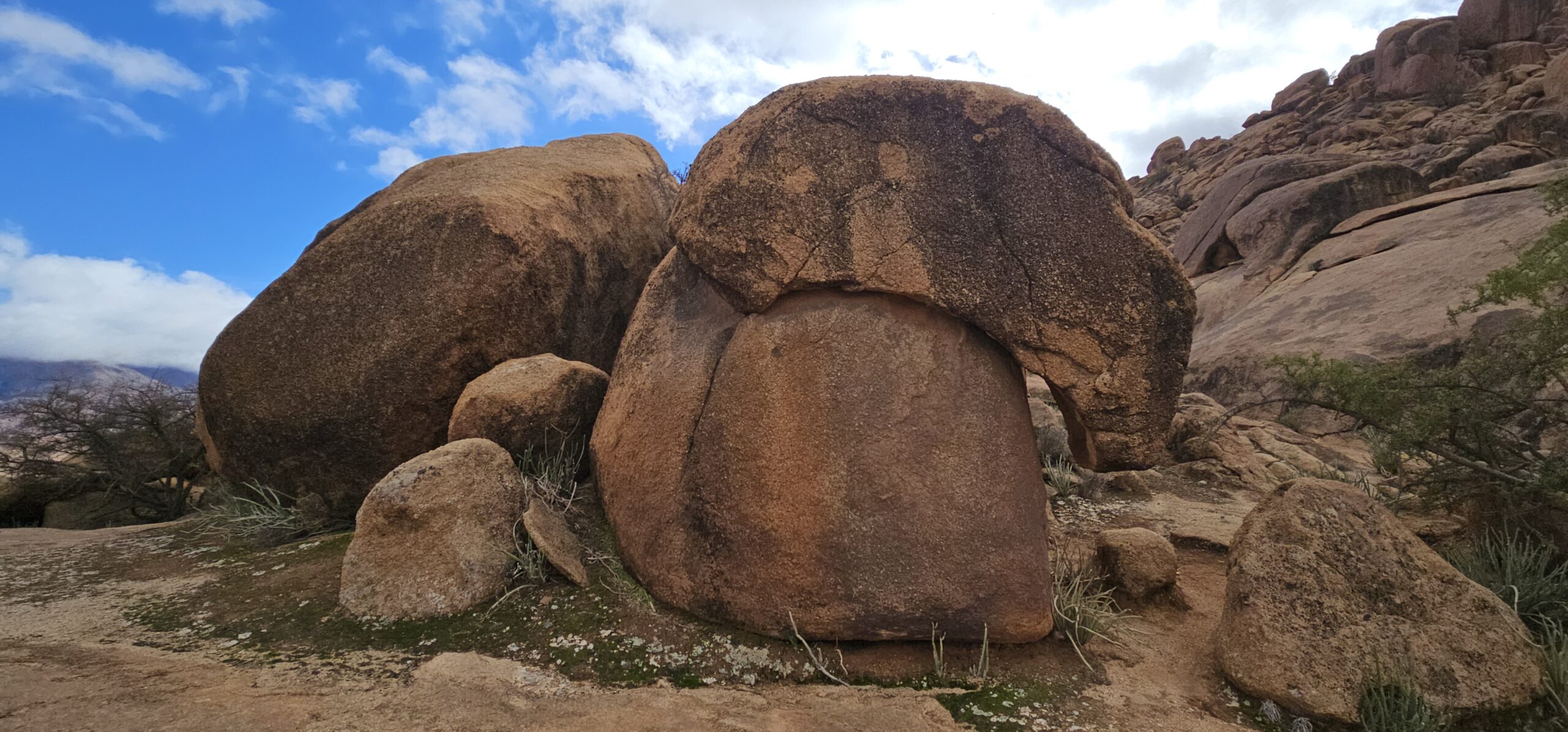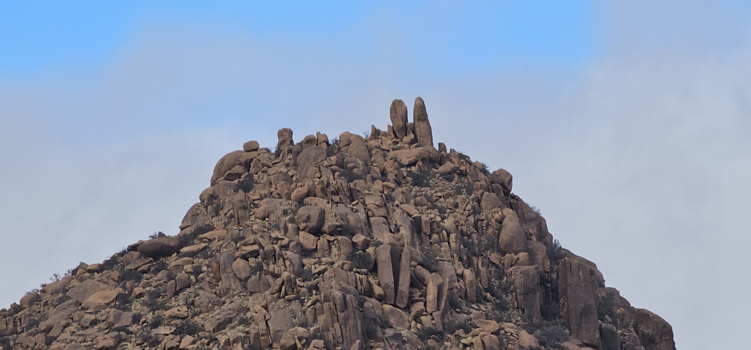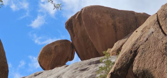 Im Dorf kaufe ich ein paar Lebensmittel ein, zu meiner Freunde bekomme ich hier auch Käse. Zurück beim Womo lese ich ein bisschen und entgegen der Prognose reißt es auf und die Sonne kommt hervor. Kurzentschlossen starte ich zu einer Wanderung, kraxle gleich hinter dem Platz den Berg hinauf. Schon bald muss ich wieder absteigen, da es nicht weiter geht. Ich mache im Zick Zack einiges an Höhe. Anstatt einer kurzen Runde wird es eine recht anstrengende Tour und es kommen 9 Kilometer und etliche Höhenmeter zusammen. Aber die unterschiedlichsten Felsformationen sind die Anstrengung allemal wert und es tut einfach so gut, in Bewegung zu sein.