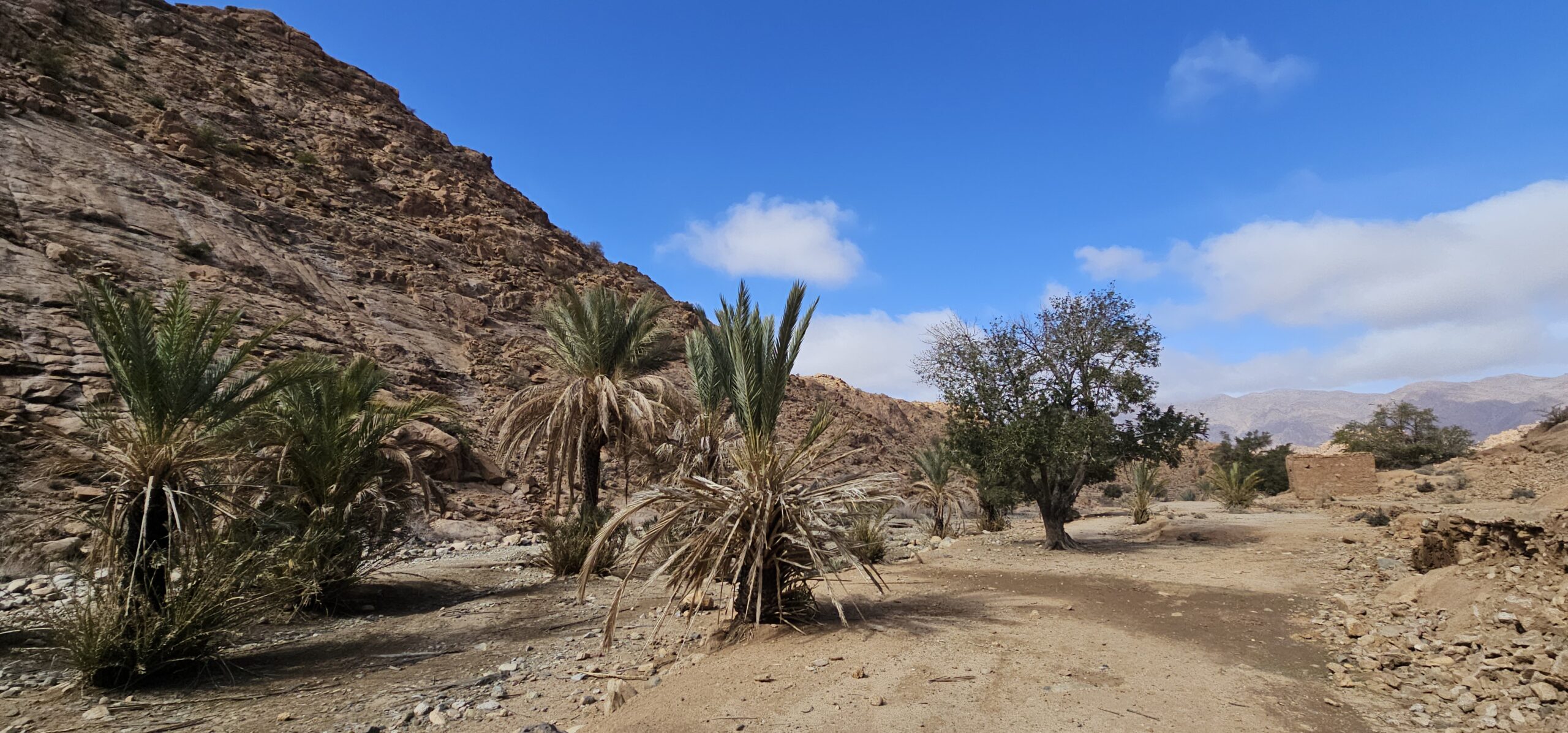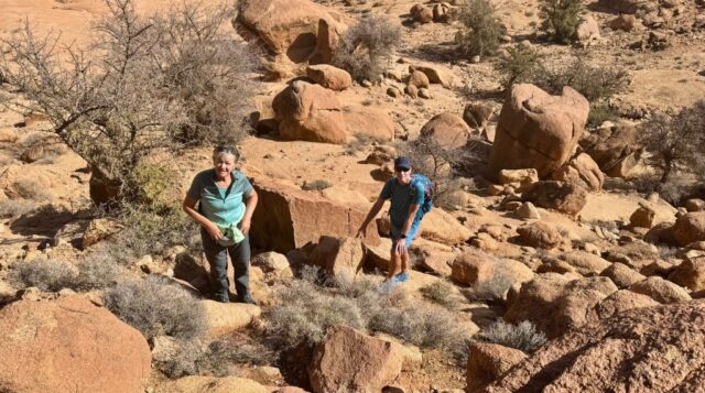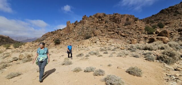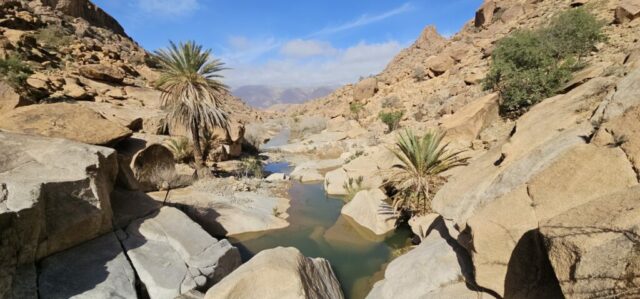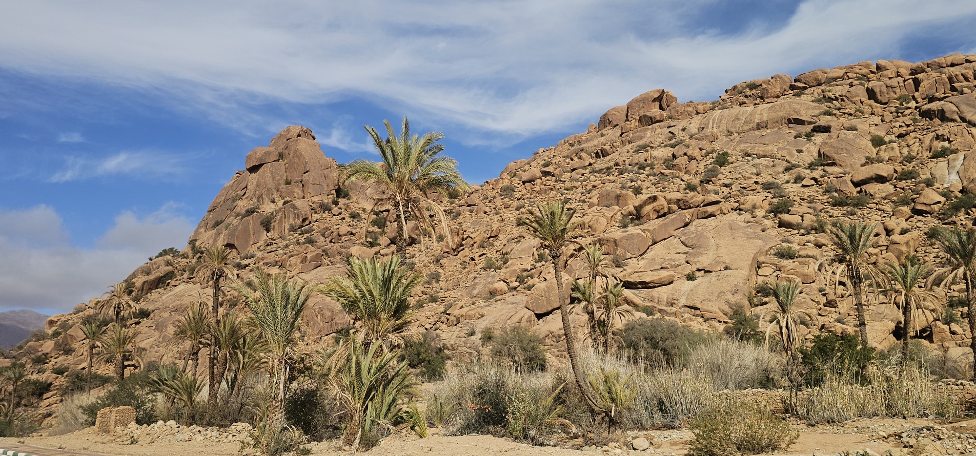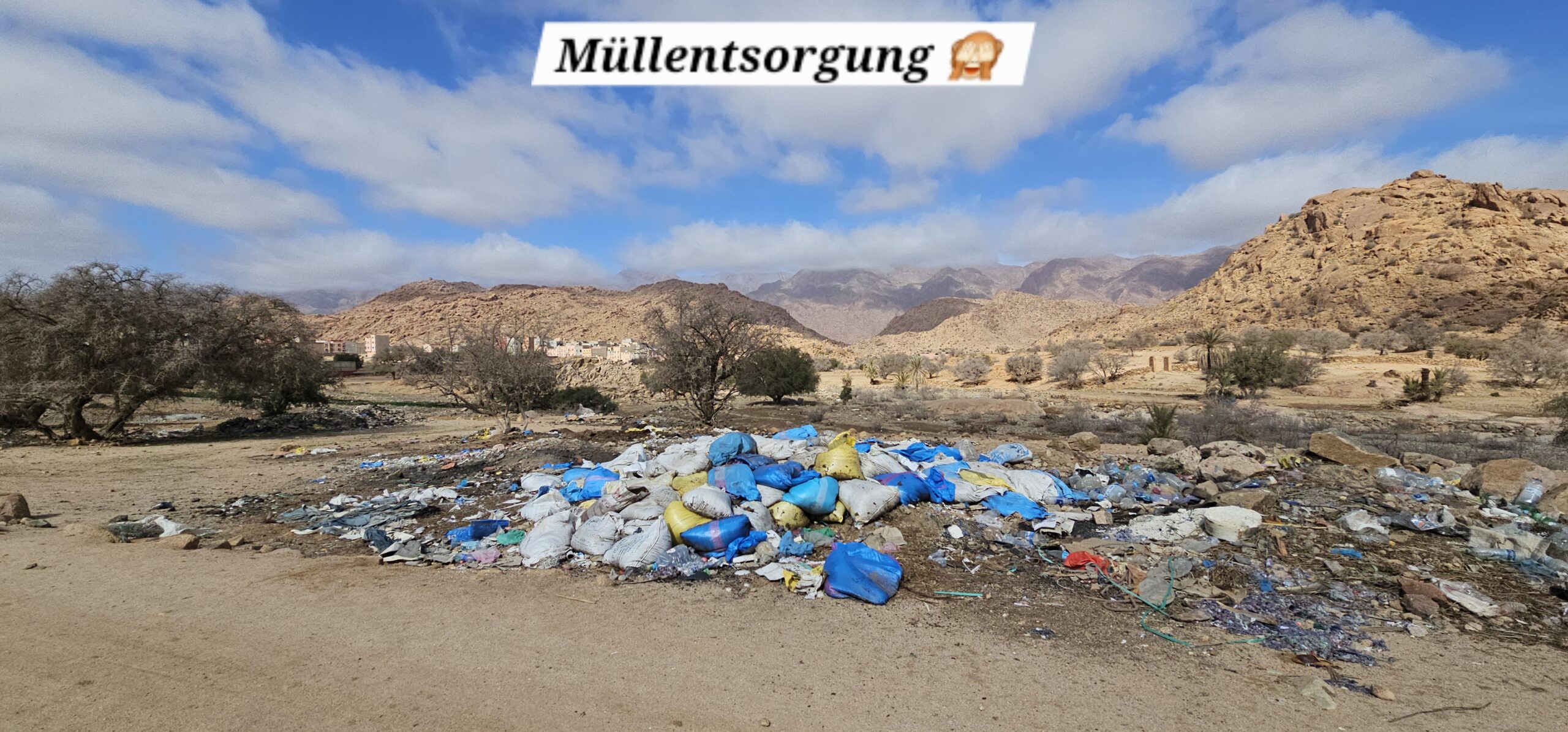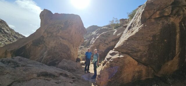Um ca. 13 Uhr mache ich mit Toni und Annelies eine kleine Wanderung, insgesamt kommen heute 13 Kilometer zusammen. Am Ortsende von Tafraout wird leider Müll unsortiert abgelagert. Wir folgen einem Flusslauf, im Moment nicht ganz ausgetrocknet. Ein paar Palmen säumen den Weg und es hat immer wieder interessante Felsformationen. Auch sind mit etwas Fantasie einige „Tiere“ auszumachen. Unterwegs kaufe ich noch etwas Obst ein. Um ca. 16 Uhr sind wir zurück, genießen anschließend bei Toni und Annelies noch einen Drink. Dann ruft Bettina, meine Tochter an, und wir tauschen uns ein bisschen aus – und auch Emil mein Enkel lauscht mit und es ist sehr schön, beide wieder (zumindest auf dem Handydisplay) zu sehen. Wir plaudern mit Freunden und haben eine gesellige Zeit bis die Sonne langsam tiefer steht und es wieder frisch wird – Zeit um wieder in die eigenen „4 Wände“ zurückzukehren… So klingt der wiederum schöne Tag gemütlich aus.