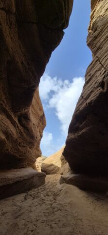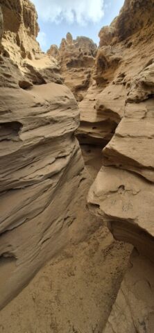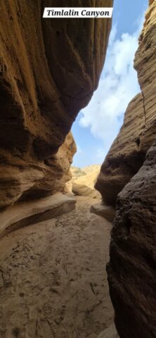 Schon bald sehe ich die Sanddünen von Timlalin. Ich parke bei einem Quadtouren-Anbieter. Ein Führer bietet zum Besuch des Canyon seine Dienste an. Die Route ist nicht weit und einfach, also verzichte ich dankend darauf. Dort schaue ich mir den kleinen aber schönen Canyon an – ein wahres Schmuckstück.
