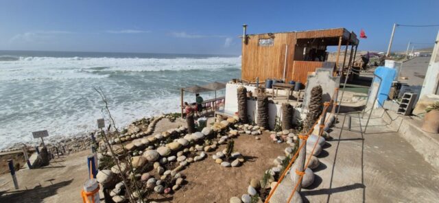 Auf der Anhöhe, ca. 200 m über dem Meer, vor ich den Ort erreiche, steuere ich einen Parkplatz an, wo es eine fantastische Aussicht auf den authentischen Fischerort gibt. Dann fahre ich hinunter und erkunde das Dorf wo wiederum eine sehr entspannte Atmosphäre mit vielen jungen Surfern herrscht.