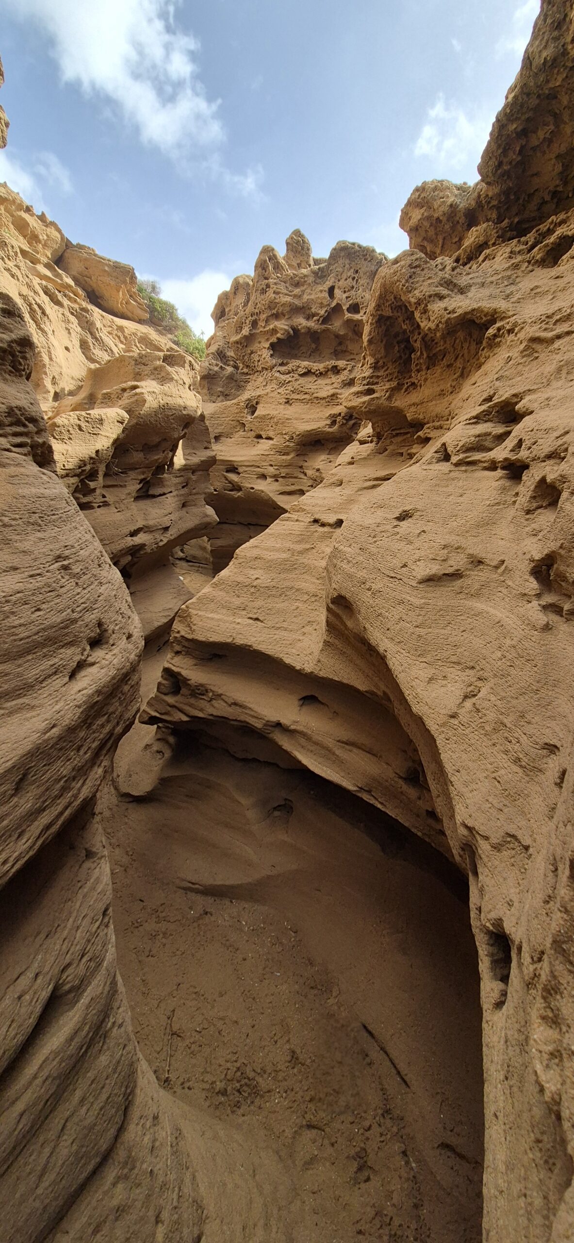 Schon bald sehe ich die Sanddünen von Timlalin. Ich parke bei einem Quadtouren-Anbieter. Ein Führer bietet zum Besuch des Canyon seine Dienste an. Die Route ist nicht weit und einfach, also verzichte ich dankend darauf. Dort schaue ich mir den kleinen aber schönen Canyon an – ein wahres Schmuckstück.