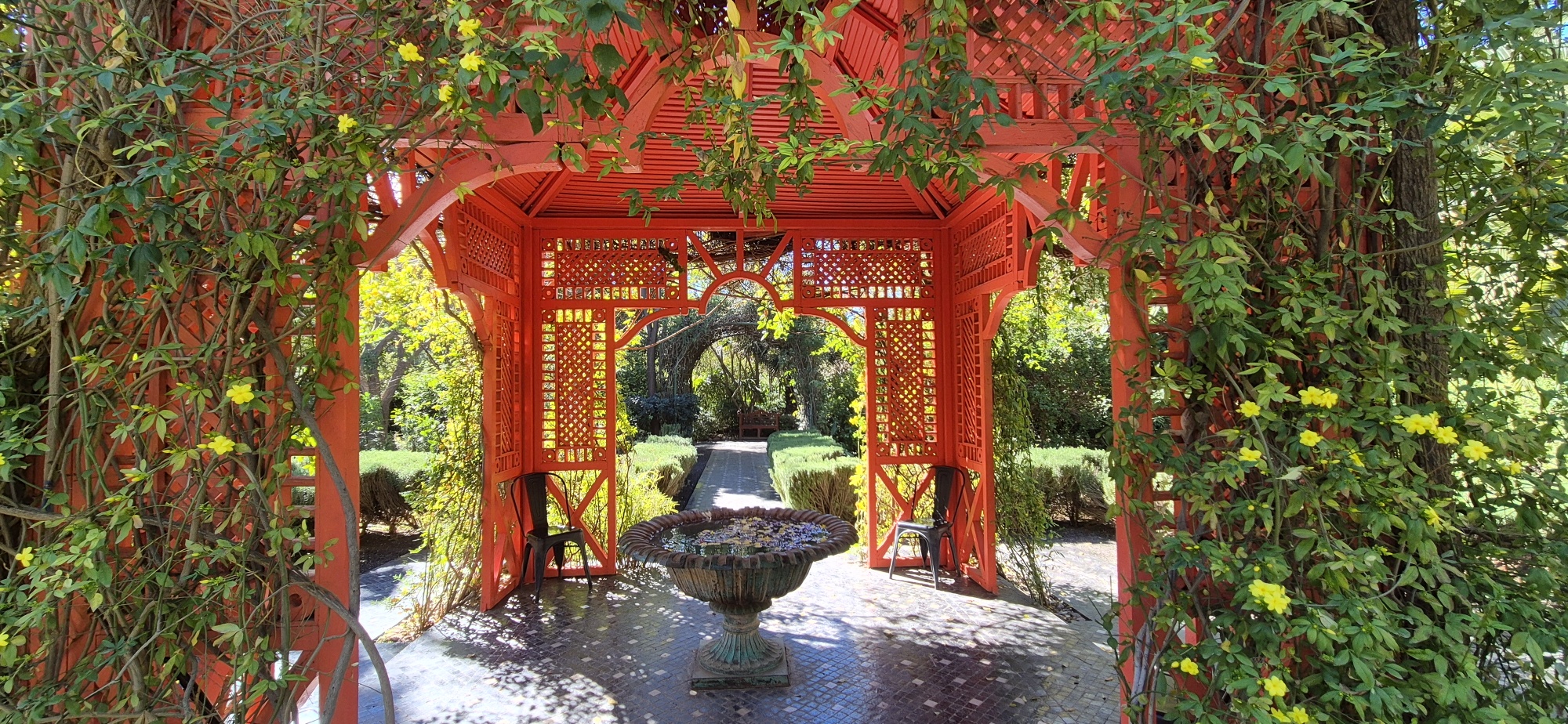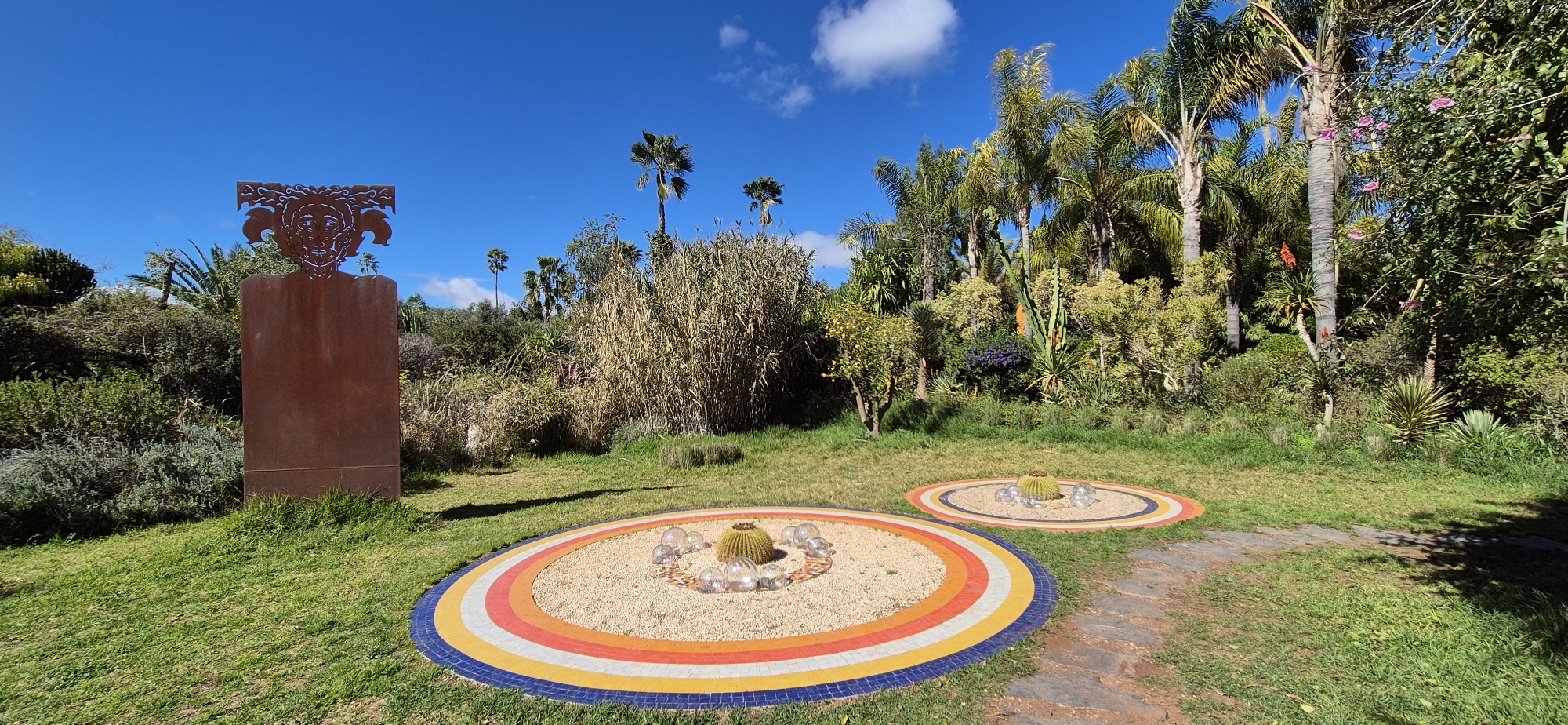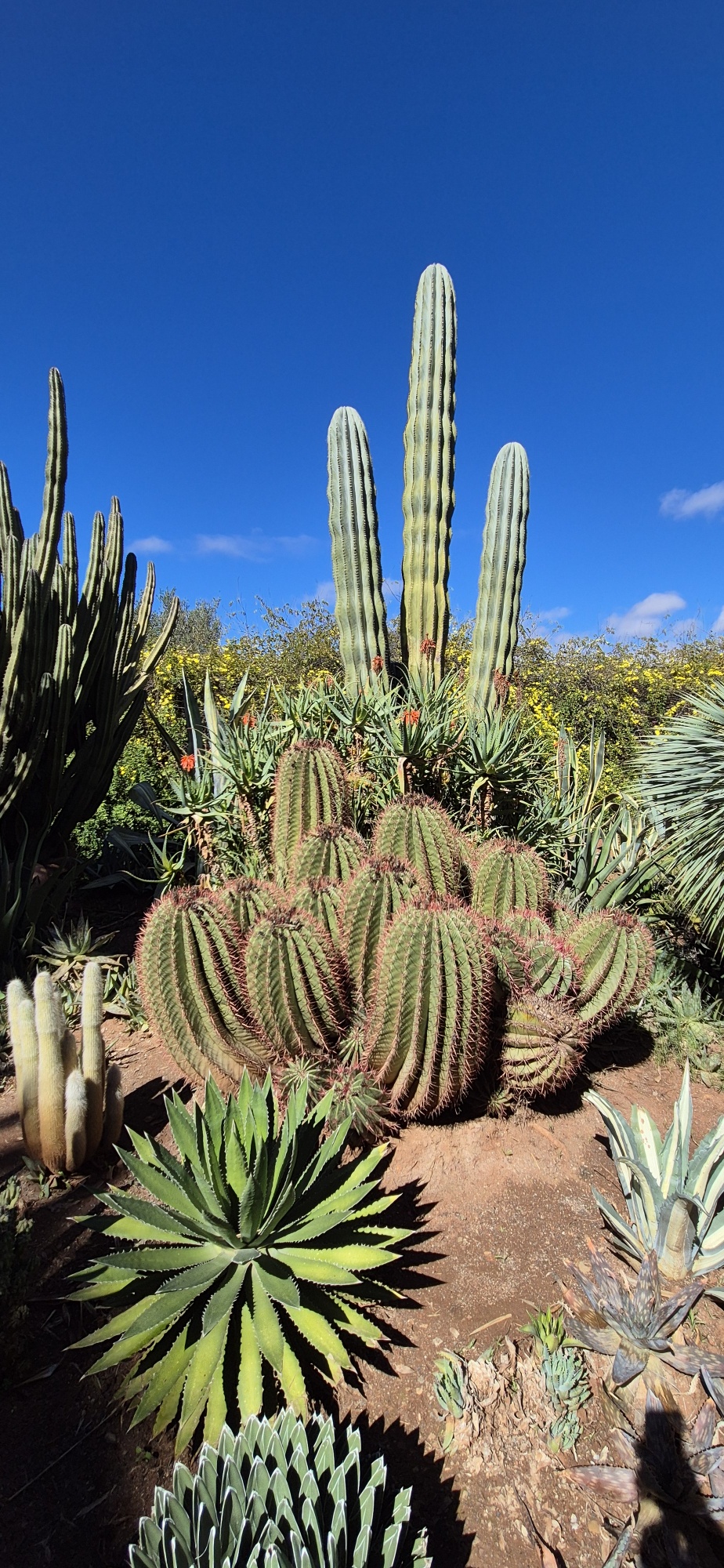 Kurz vor 14 Uhr gehe ich hinein und bestaune die Vielfalt dieses Gartens, welcher nicht allzu groß ist. Im Gegensatz zu gestern, wo die Besuchermassen im Jardin Majorelle „kanalisiert“ worden sind, kann man hier nach Belieben herumspazieren. Aber es hat auch viel, viel weniger Besucher und das ist sehr angenehm.