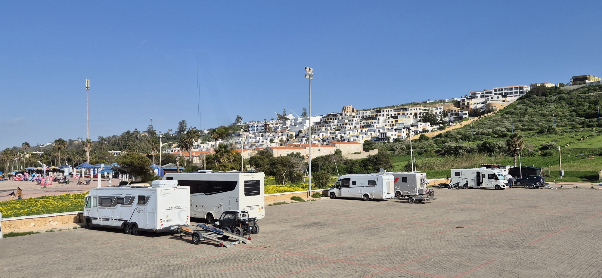In der Früh ein letzter Regenschauer, dann lockert es auf und die Sonne zeigt sich. Dieser Stellplatz ist meines Erachtens völlig überbewertet – sehr schmale Parzellen, nach dem Regen gatschig, die Sanitäranlagen ein Thema für sich. Die Entsorgung der WC-Kassette etwas vom Schlechtesten, was ich bisher in Marokko gesehen habe. Wo ich das Grauwasser ablassen kann hab ich gefragt: nachdem ich draußen bin in der Natur entsorgen – wurde mir von der Chefin gesagt. So was sollte es nicht geben! Und das zum bisher höchsten Preis, welchen ich in diesem Land bezahlt habe. Aber alle waren freundlich und hilfsbereit – das war das einzige Positive.