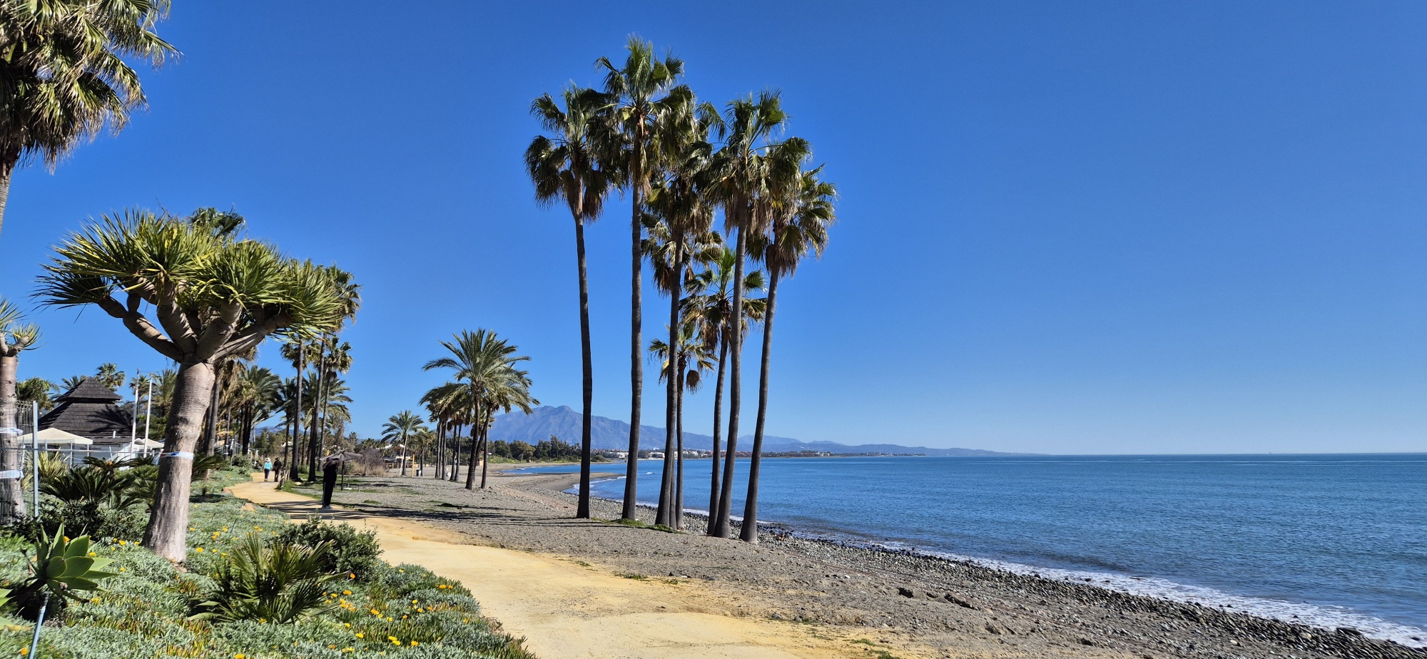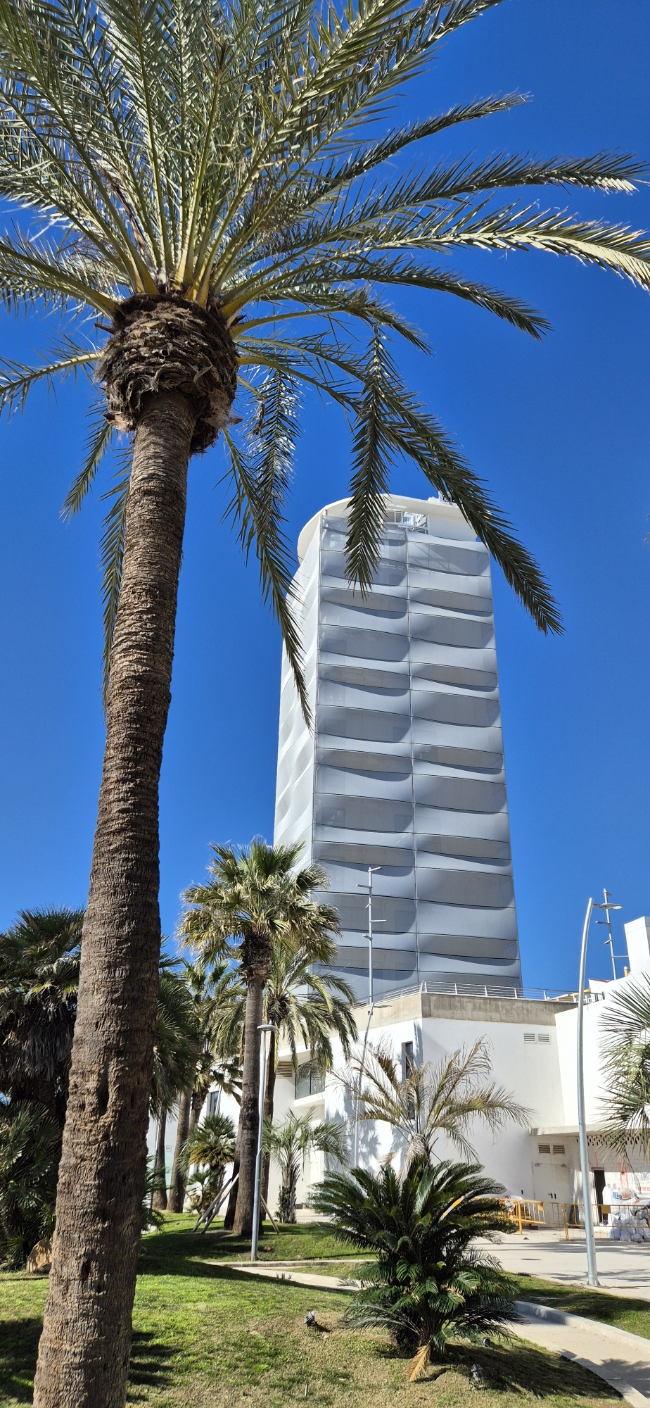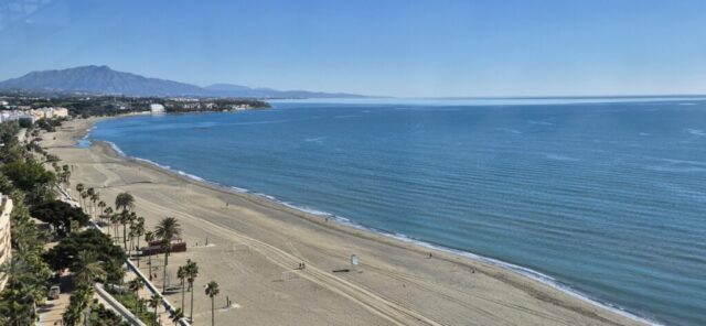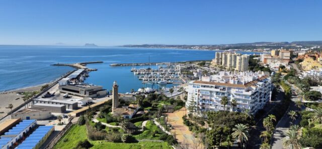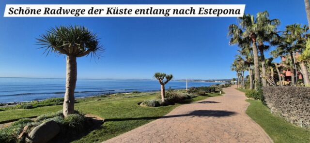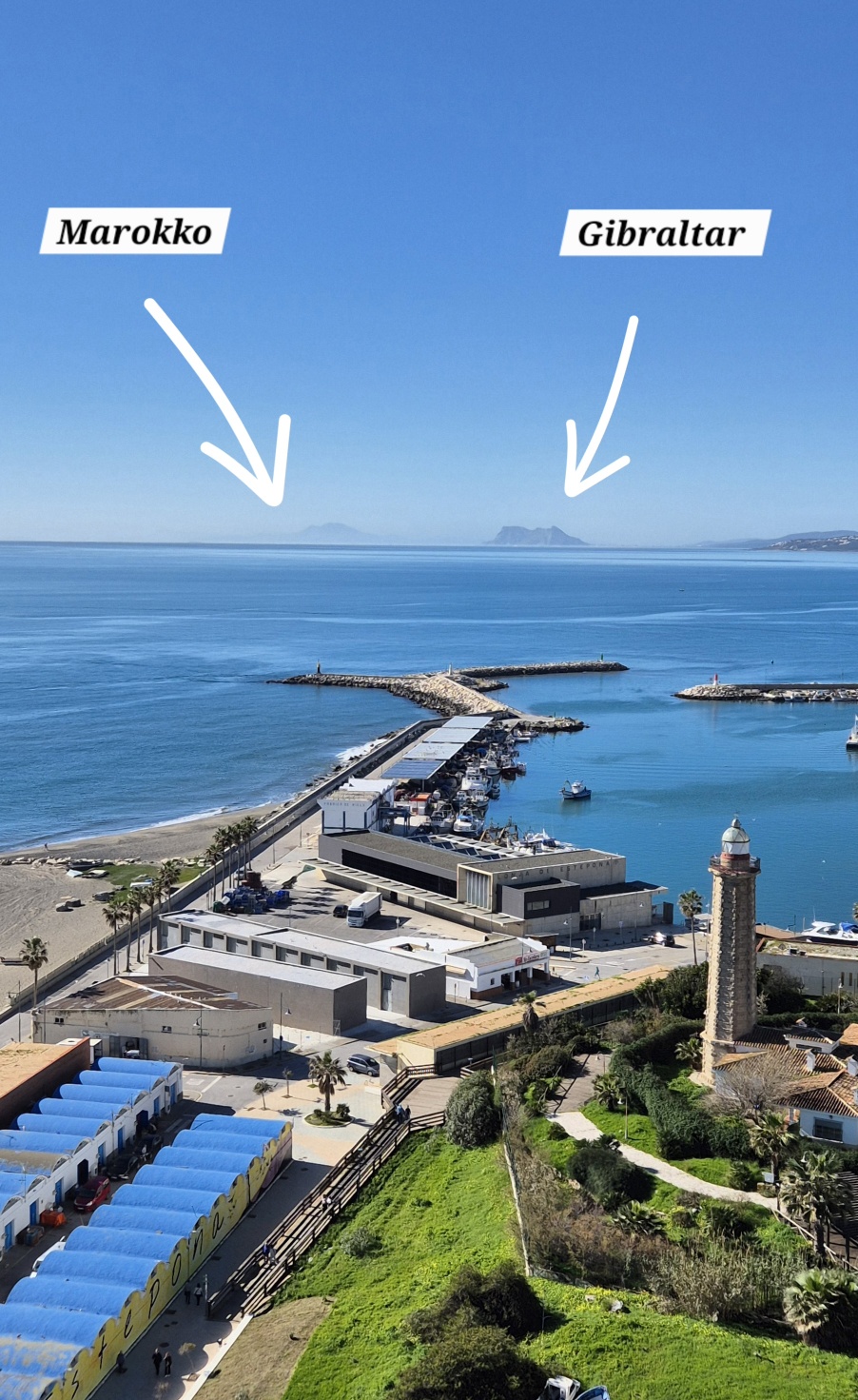 Ein wunderschöner Morgen, strahlend blauer Himmel und windstill. Ich fahre mit dem Rad nach Estepona zum neuen Aussichtsturm. 11 Kilometer sind es über einen schönen Radweg, immer am Strand entlang, bis dorthin. Für „Senioren“ kostet der Eintritt anstatt € 6 nur € 1 – wunderbar. Mit dem Lift geht es in den 12. Stock hinauf von wo ich eine tolle Aussicht habe. Es hat kaum Dunst und so können bei dieser guten Sicht Gibraltar und sogar die Berge Marokkos klar erkannt werden.