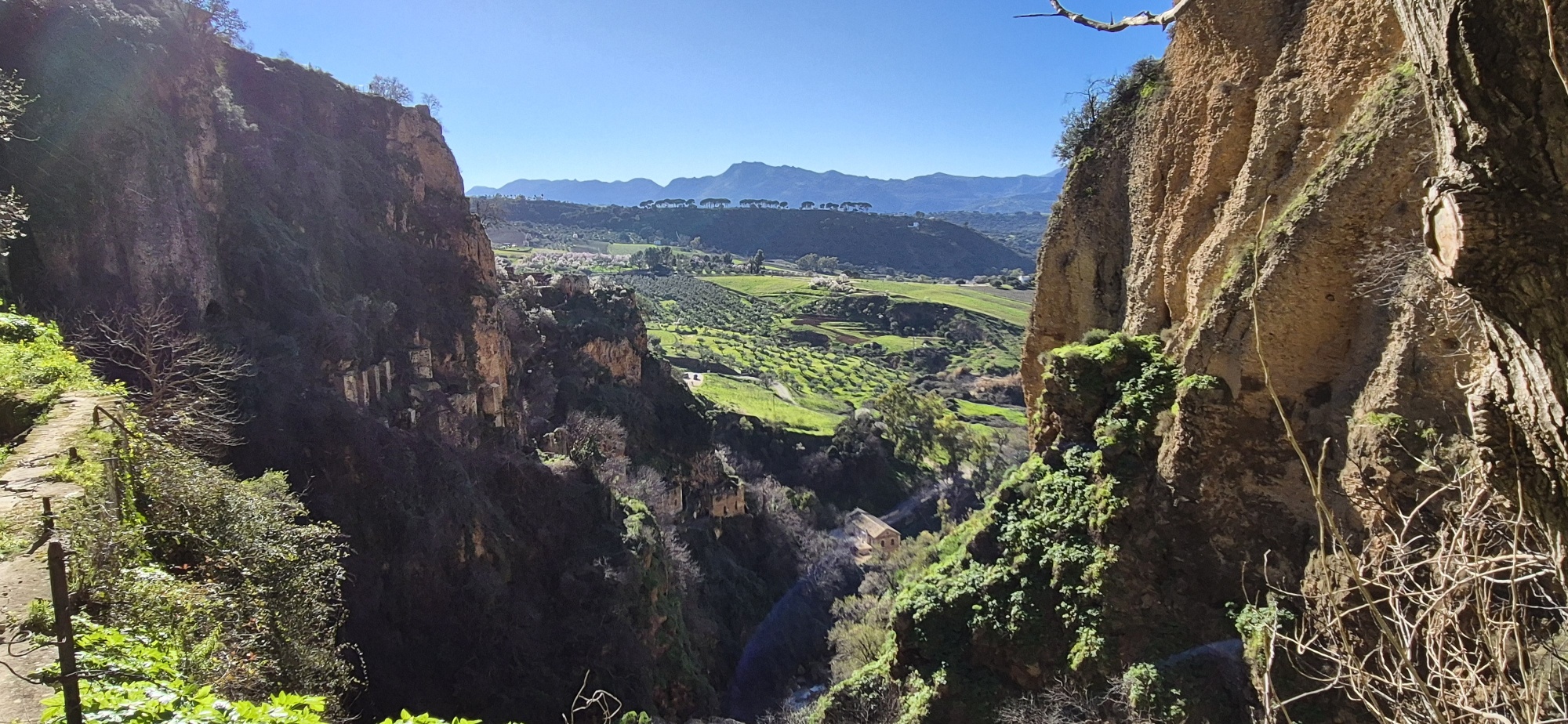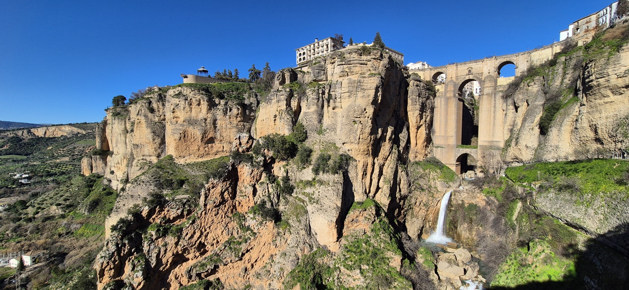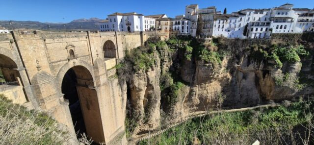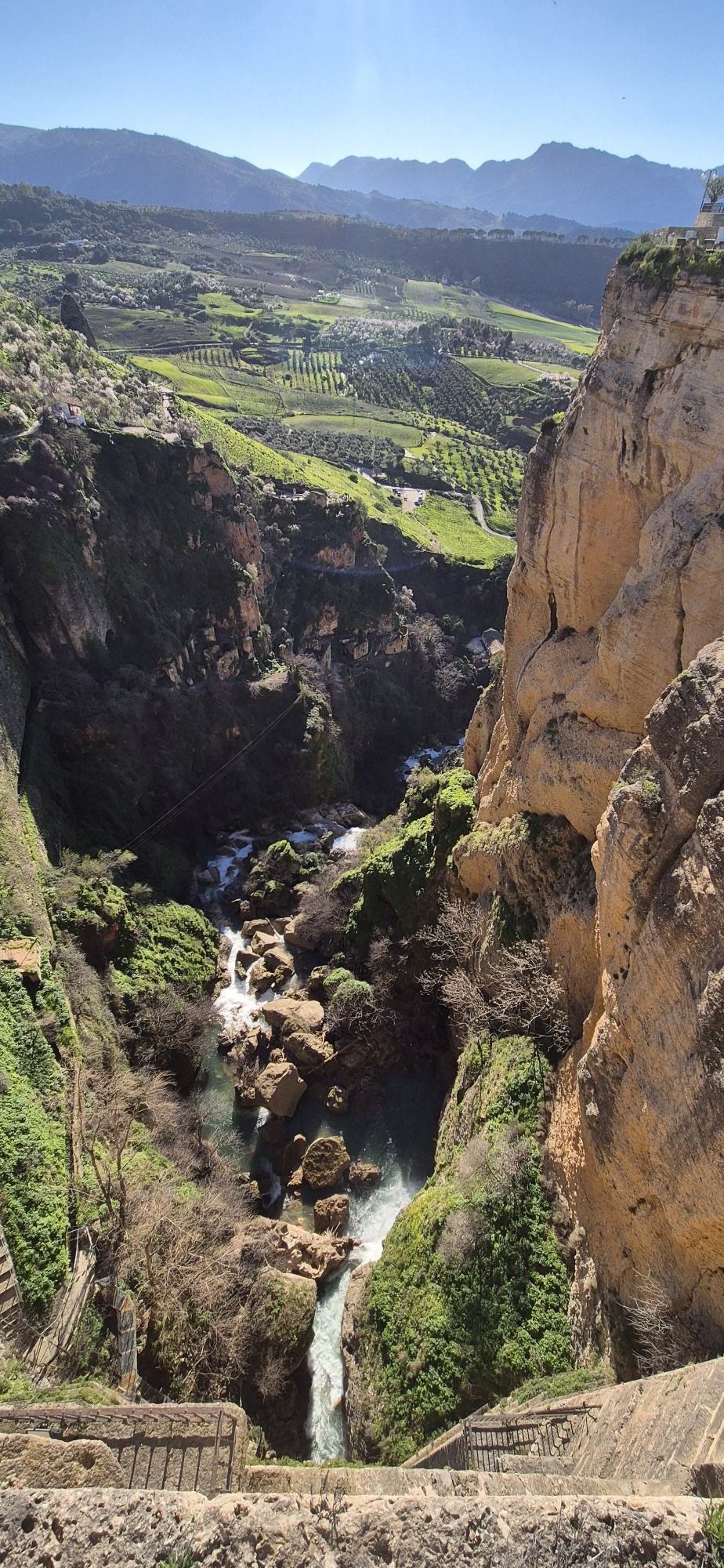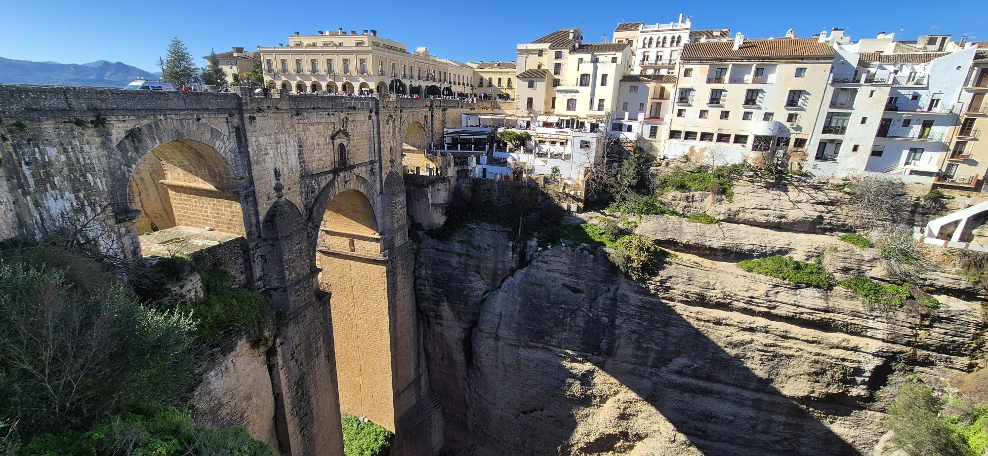Gleich mal habe ich ein paar Fotos mit der Drohne gemacht, dann gehe ich los und erkunde die schöne Stadt. Nach der Brücke gehe ich hinab in die Schlucht, wo ich über diesen Weg bisher noch nie war. Von hier aus habe ich wunderschöne Blicke auf den Felsen, wo sie Stadt drauf thront.