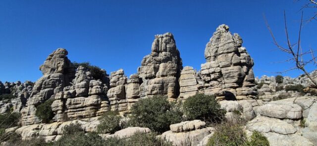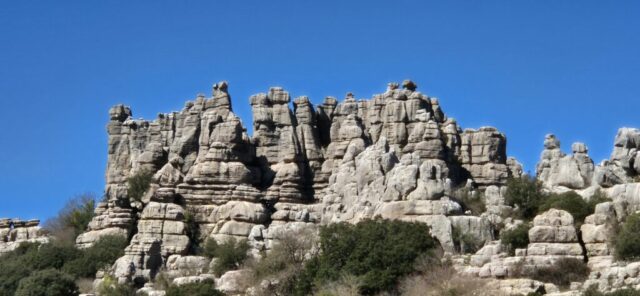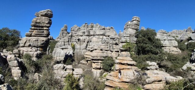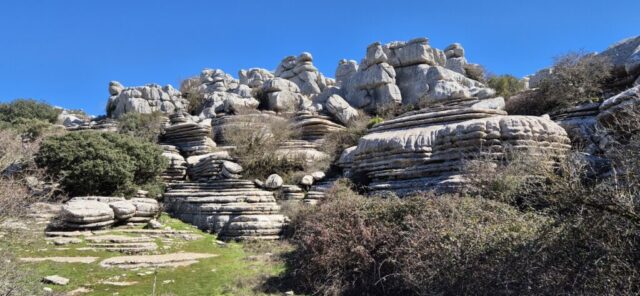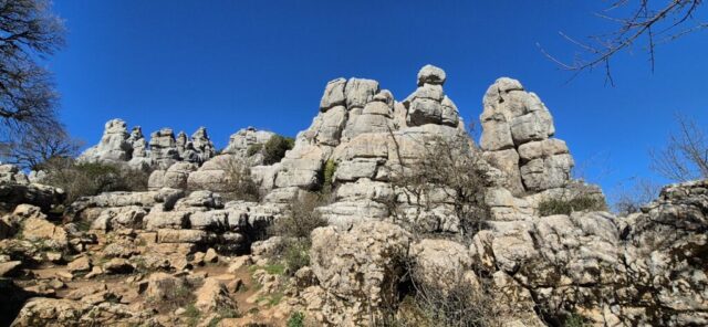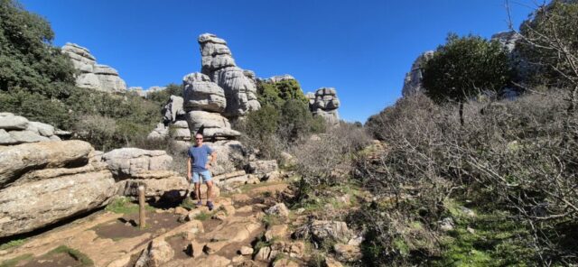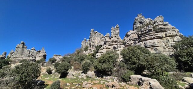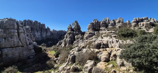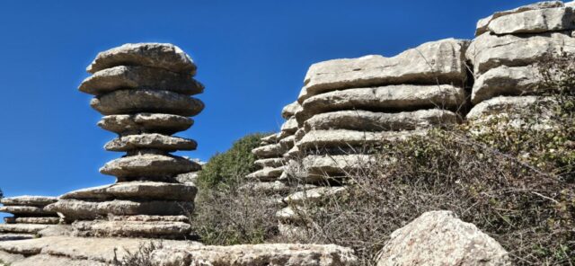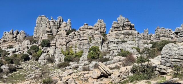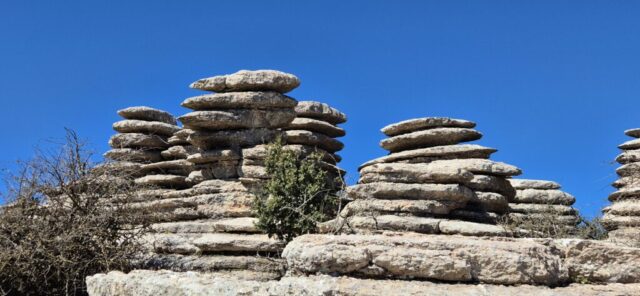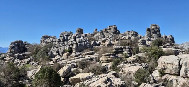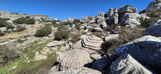 Um ca. 11 Uhr komme ich zur Abzweigung zum Besucherzentrum El Torcal – leider ist die Zufahrt wegen einer Radveranstaltung gesperrt. Es wurde aber ein Shuttledienst eingerichtet und so parke ich dort und bin bald darauf oben beim Ausgangspunkt zu den spektakulären Felsformationen.