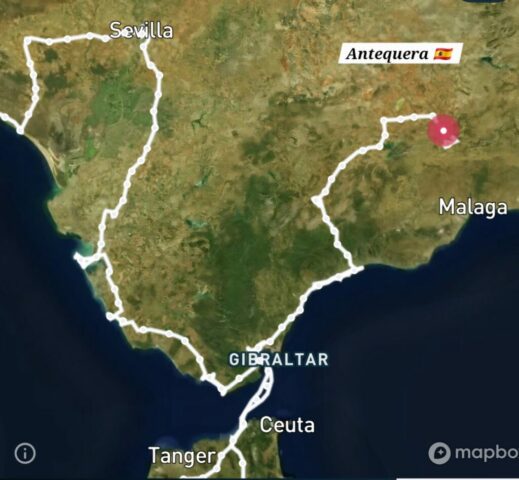 Antequera ist sehr Camper freundlich – hier gibt es eine kostenlose Möglichkeit zum Ver- und Entsorgen von Wasser und WC, auch gratis Stellplätze. Ich fahre noch zu einem Supermarkt und decke mich mit Lebensmitteln ein, besonders solchen, welche ich 2 Monate in Marokko nicht bekommen konnte. Dann fahre ich zu einem ruhigen Stellplatz über der Stadt, gehe dort noch eine runde zur naheliegenden Alcazaba und genieße anschließend als Sundowner ein Gläschen an der langsam untergehenden Sonne, welche sich erst kurz nach 19 Uhr verabschiedet….