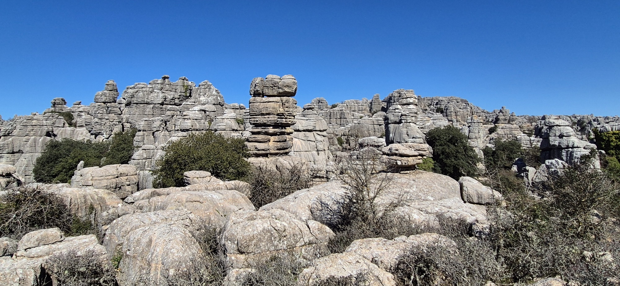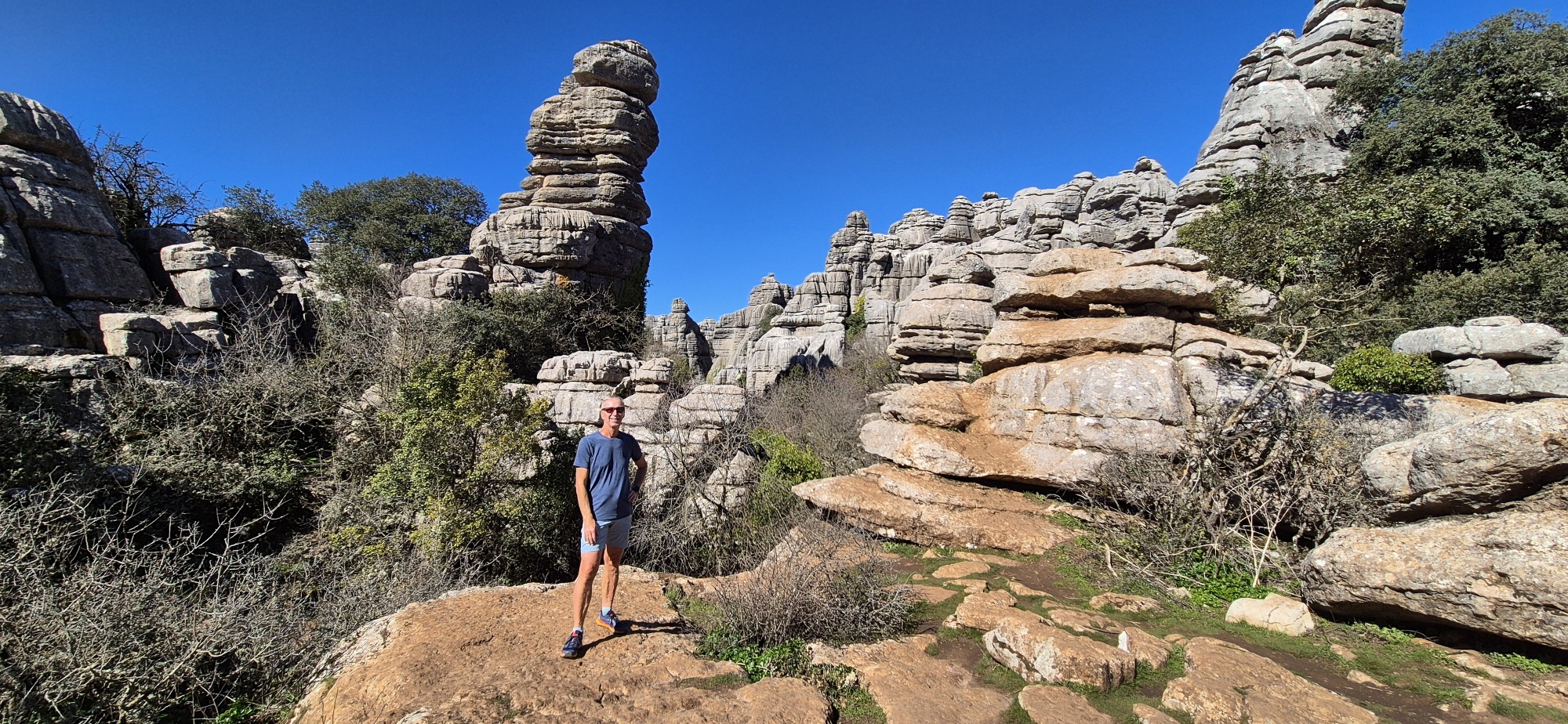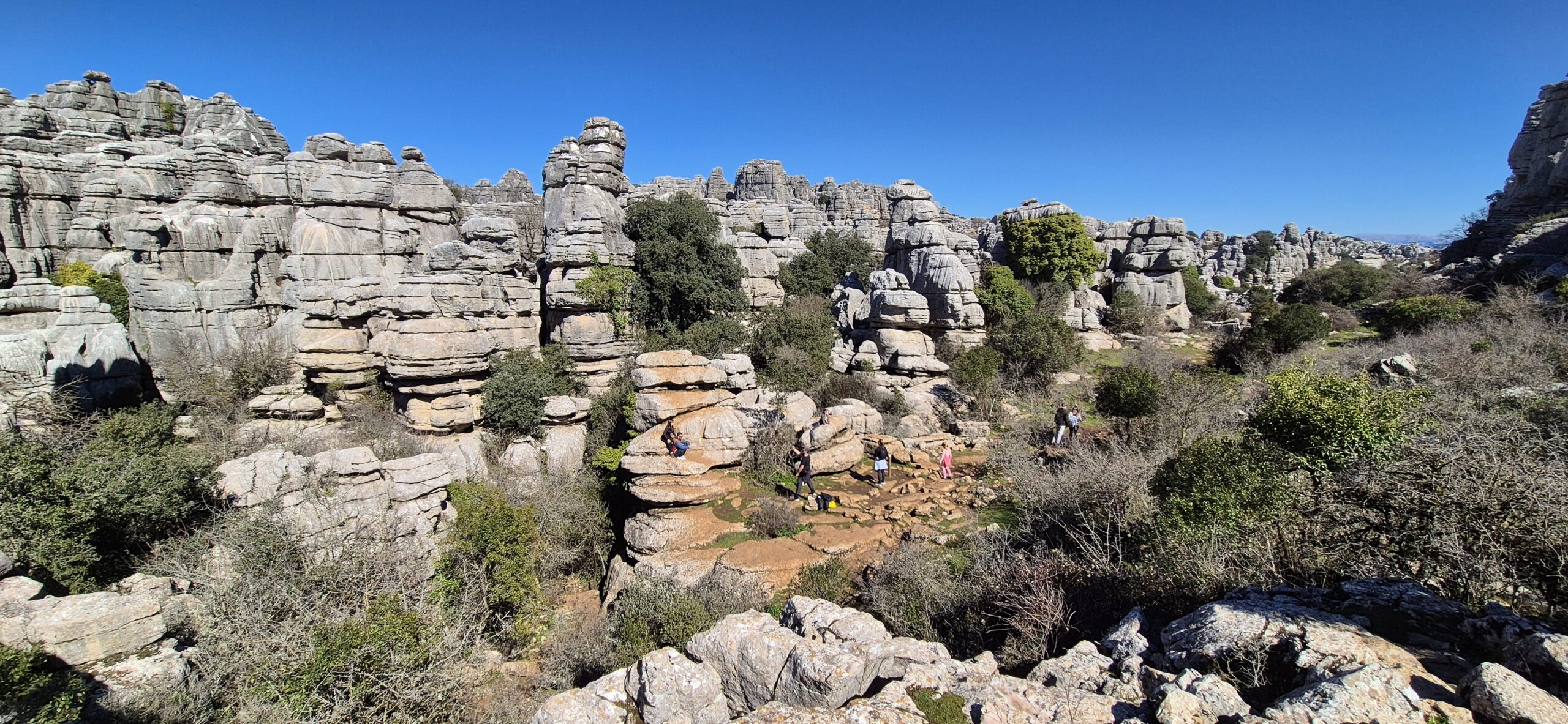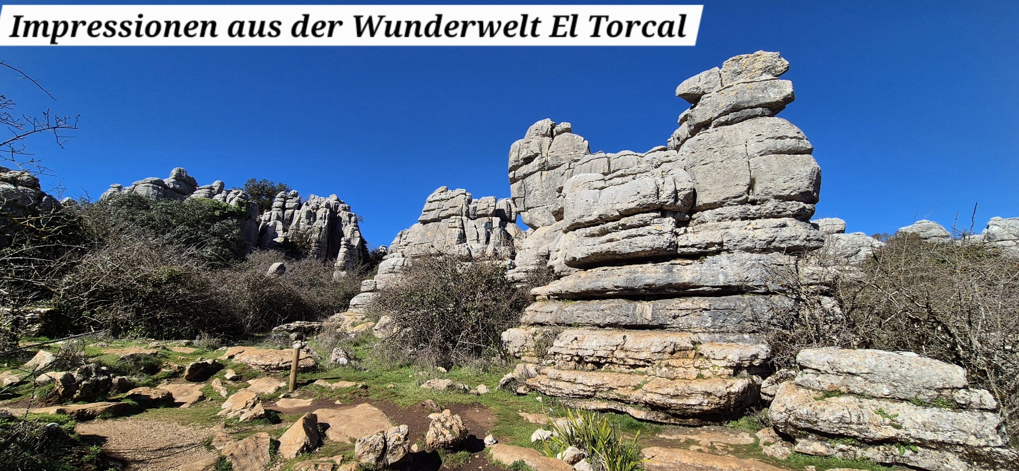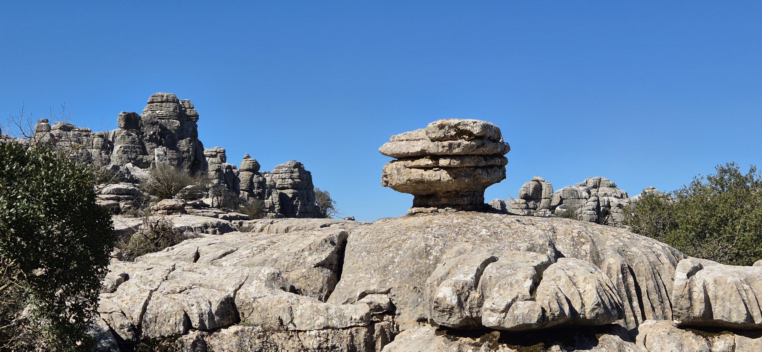 Um ca. 11 Uhr komme ich zur Abzweigung zum Besucherzentrum El Torcal – leider ist die Zufahrt wegen einer Radveranstaltung gesperrt. Es wurde aber ein Shuttledienst eingerichtet und so parke ich dort und bin bald darauf oben beim Ausgangspunkt zu den spektakulären Felsformationen.