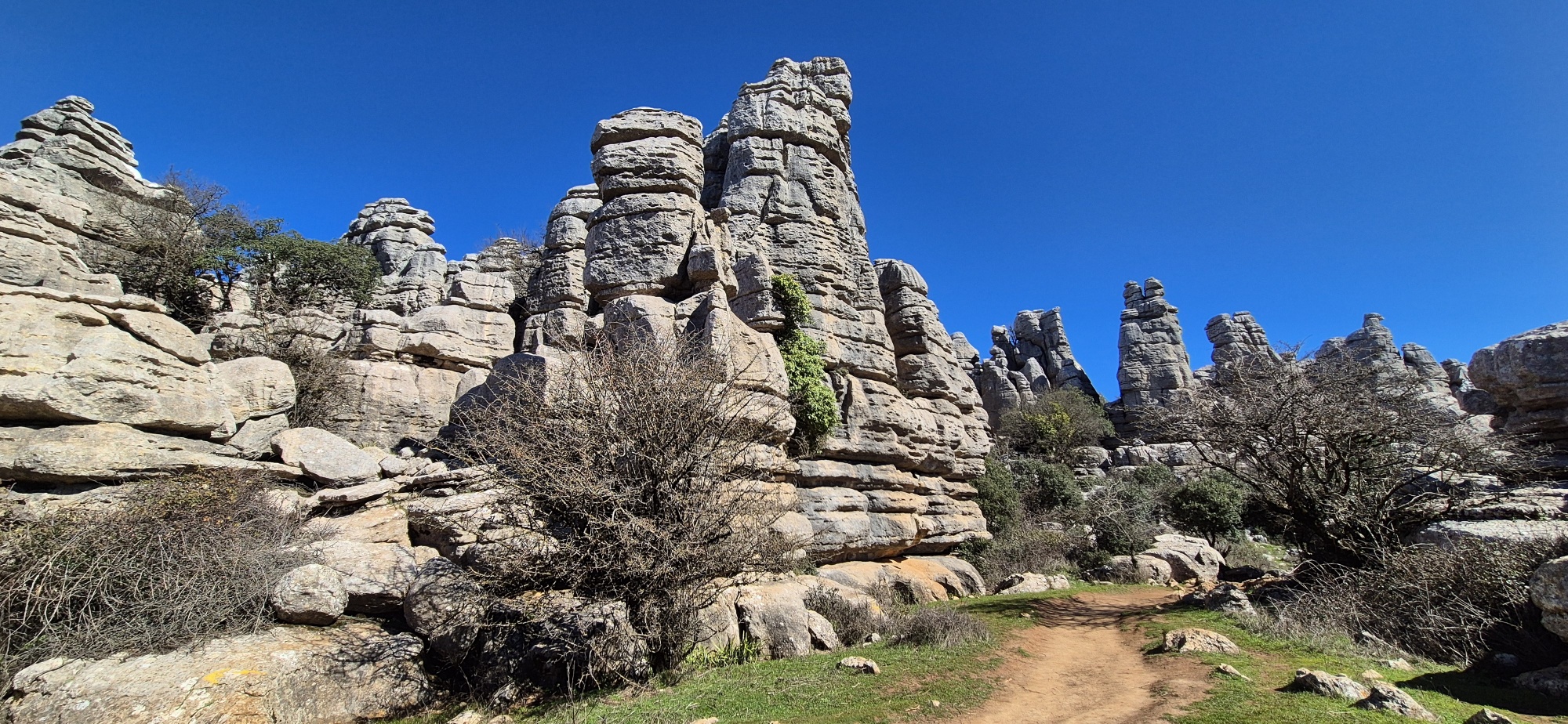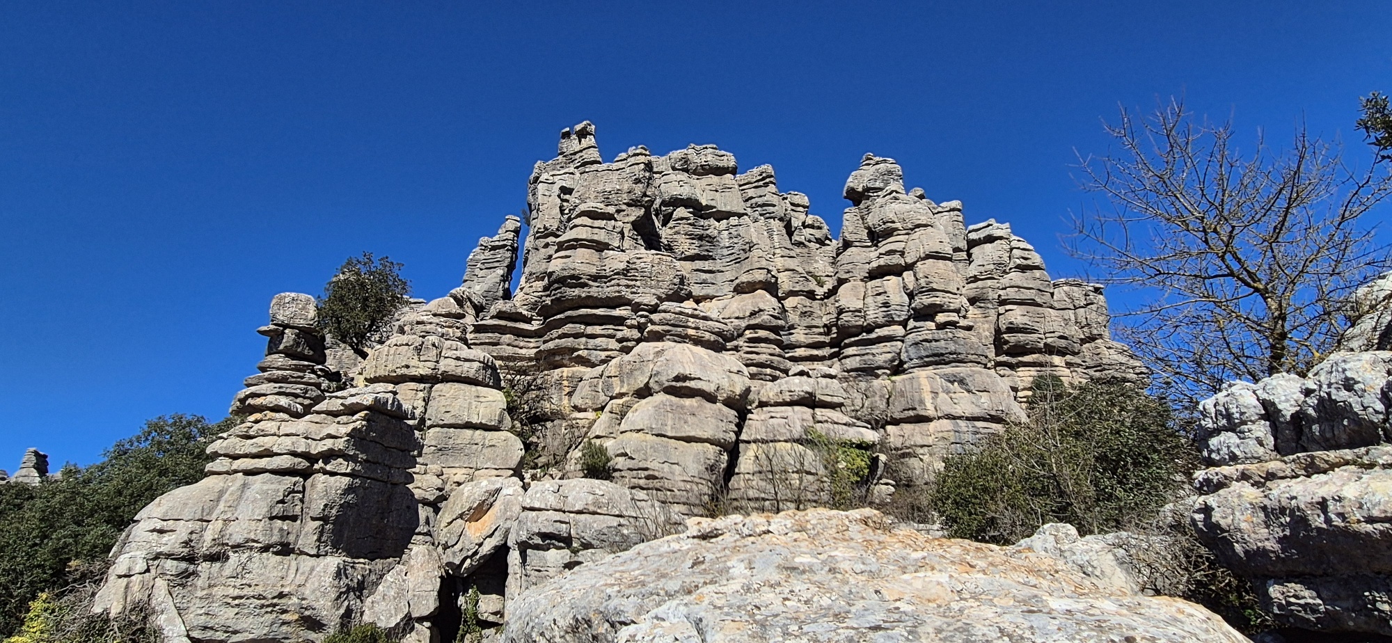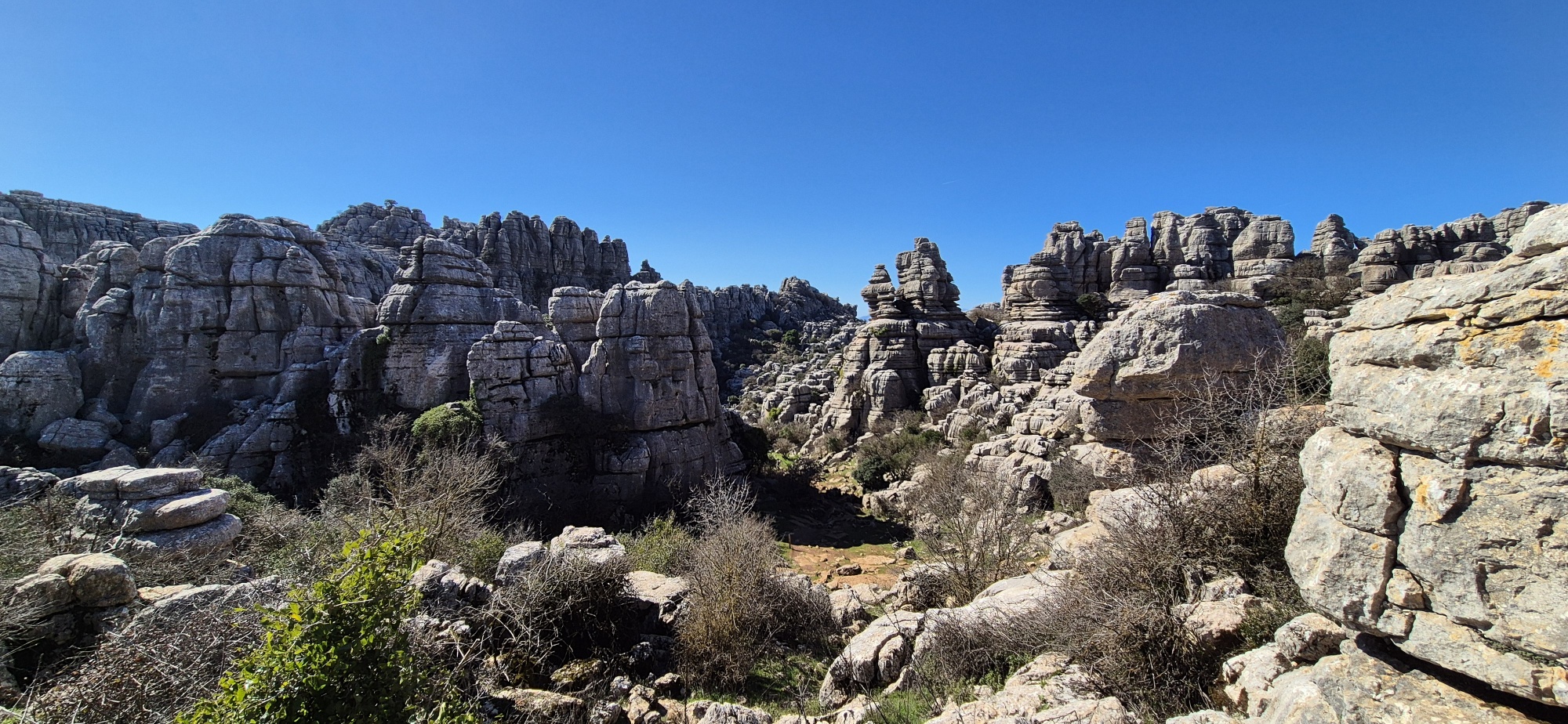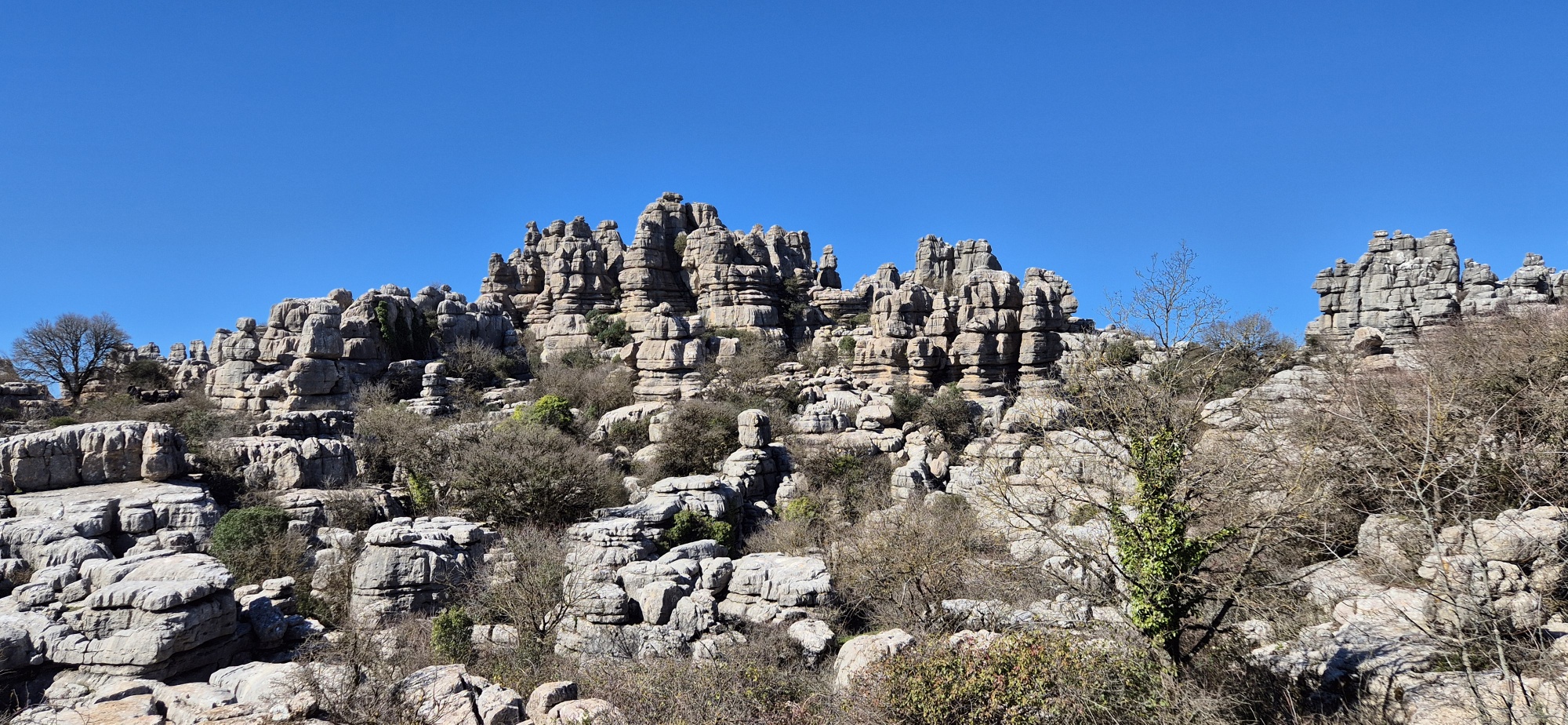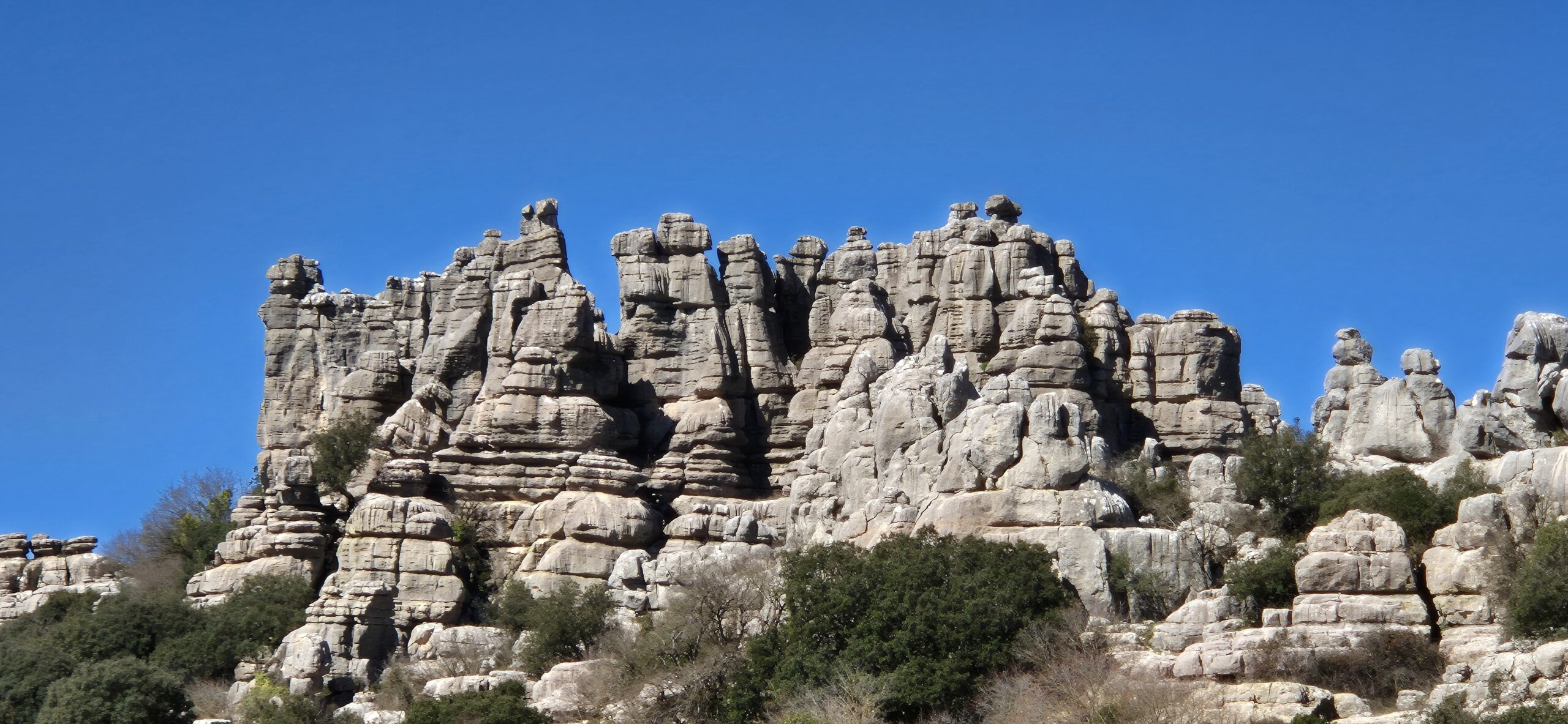 Um ca. 11 Uhr komme ich zur Abzweigung zum Besucherzentrum El Torcal – leider ist die Zufahrt wegen einer Radveranstaltung gesperrt. Es wurde aber ein Shuttledienst eingerichtet und so parke ich dort und bin bald darauf oben beim Ausgangspunkt zu den spektakulären Felsformationen.