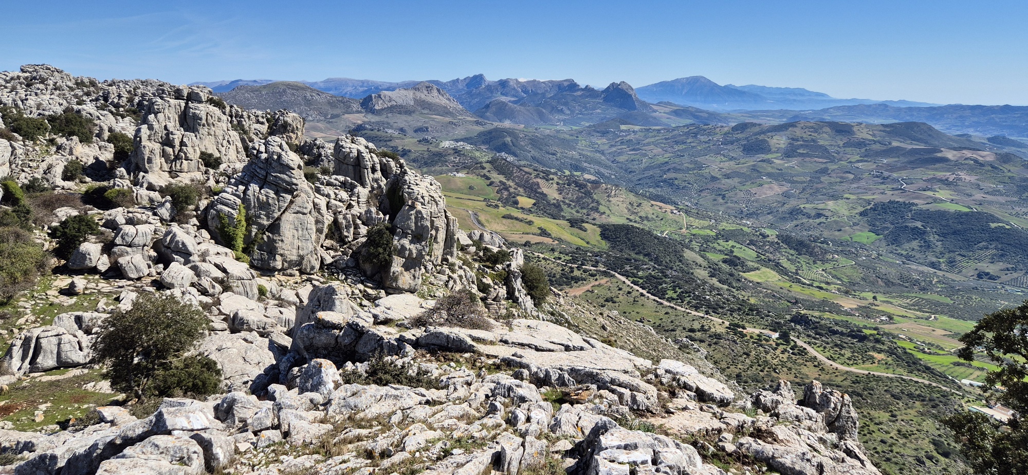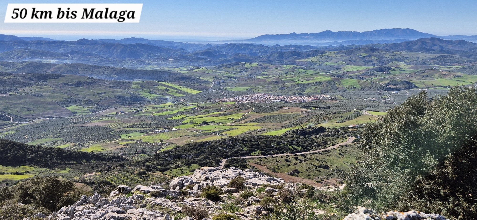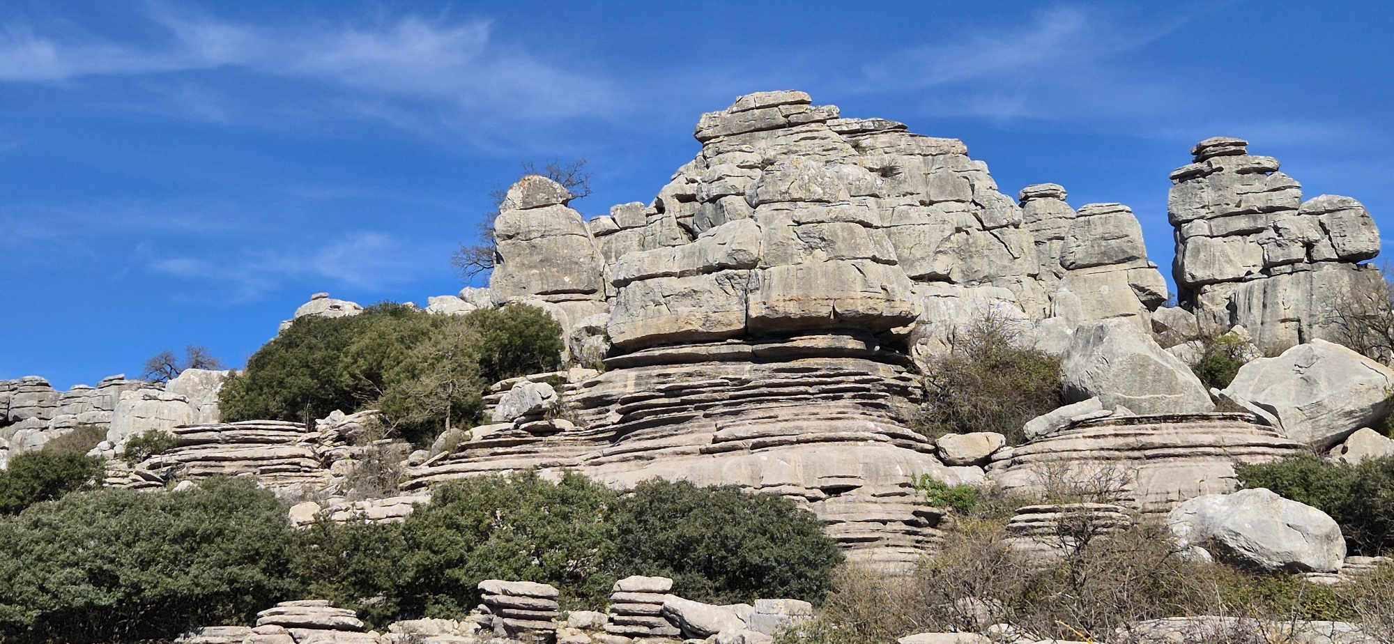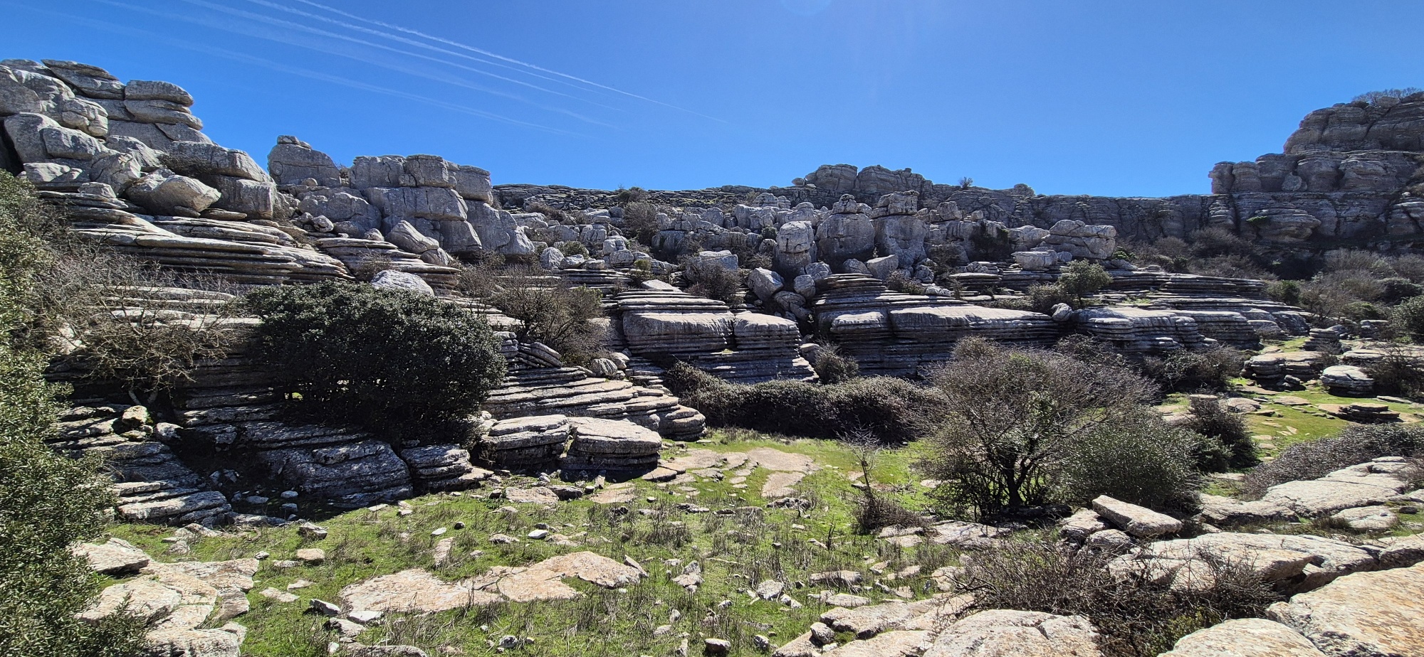 Am Besucherzentrum vorbei steige ich auf einen Felsrücken hoch. Von hier habe ich eine tolle Sicht bis Malaga, welches ca. 50 Kilometer entfernt ist. Dann gehe ich nochmals zu den schon am Samstag besuchten beeindruckendsten Felsformationen, wo ich mich tagelang aufhalten könnte. Nach jeder Windung eröffnen sich neue Blickwinkel. Auch ist es heute mit wenigen Besuchern sehr angenehm.