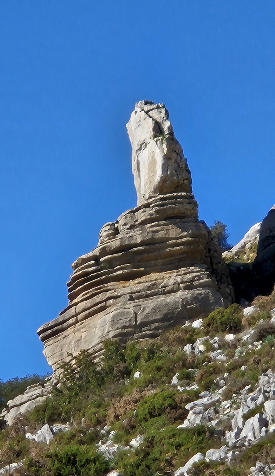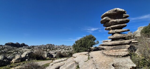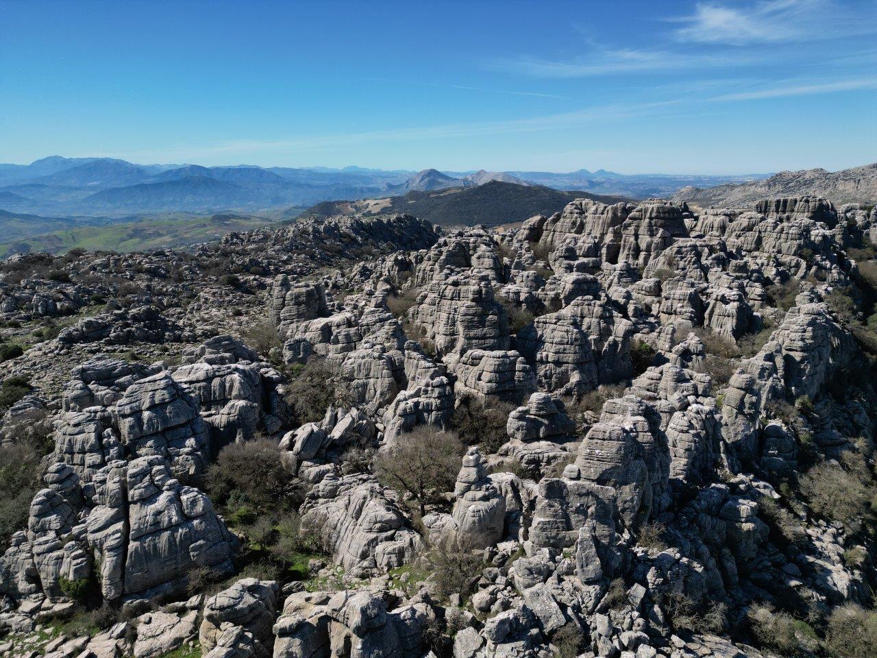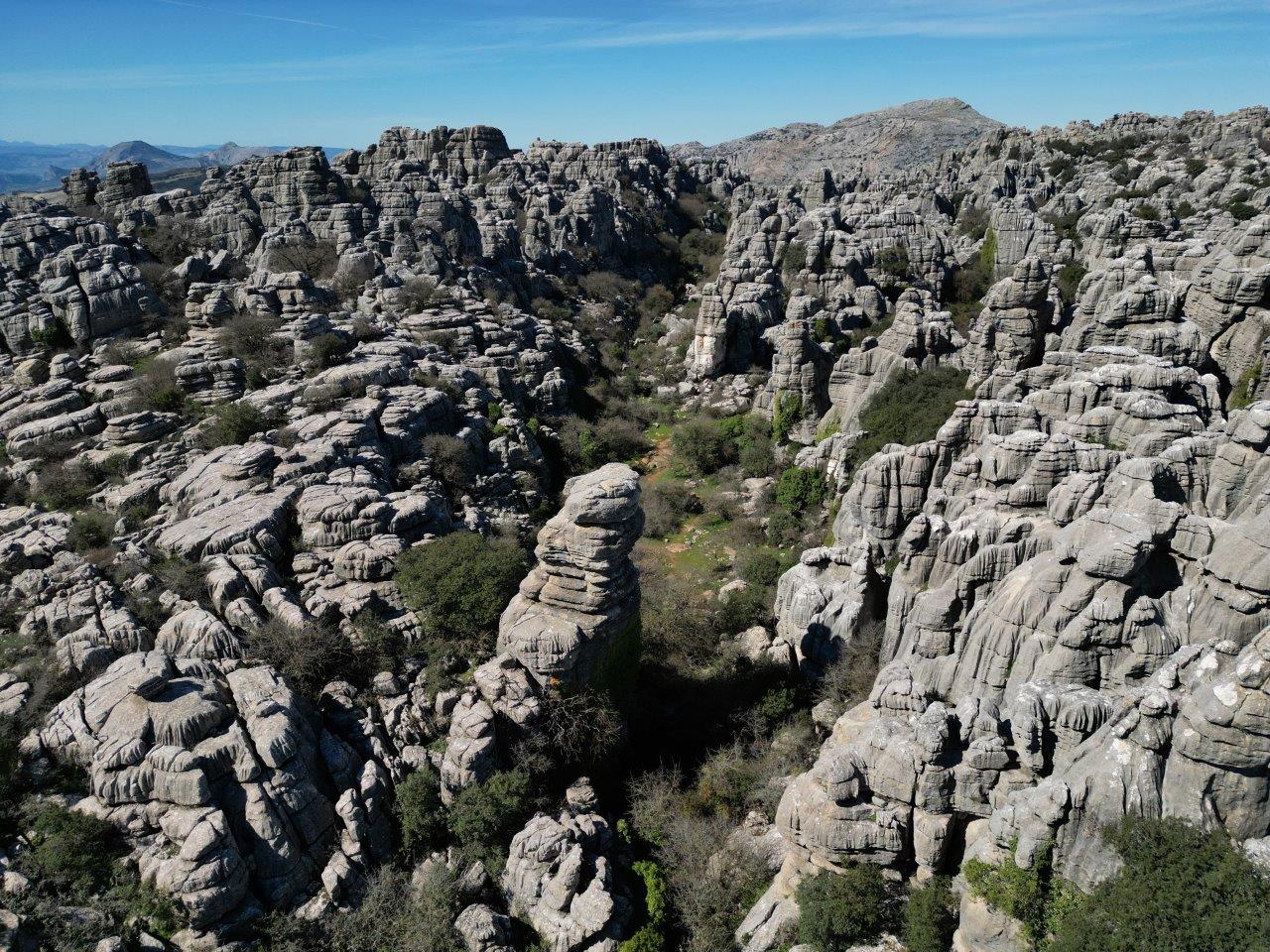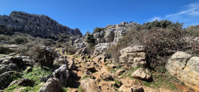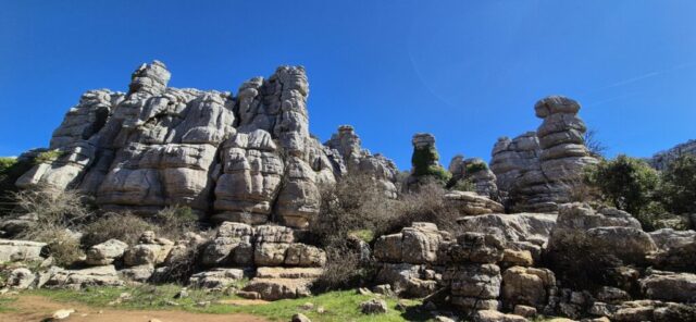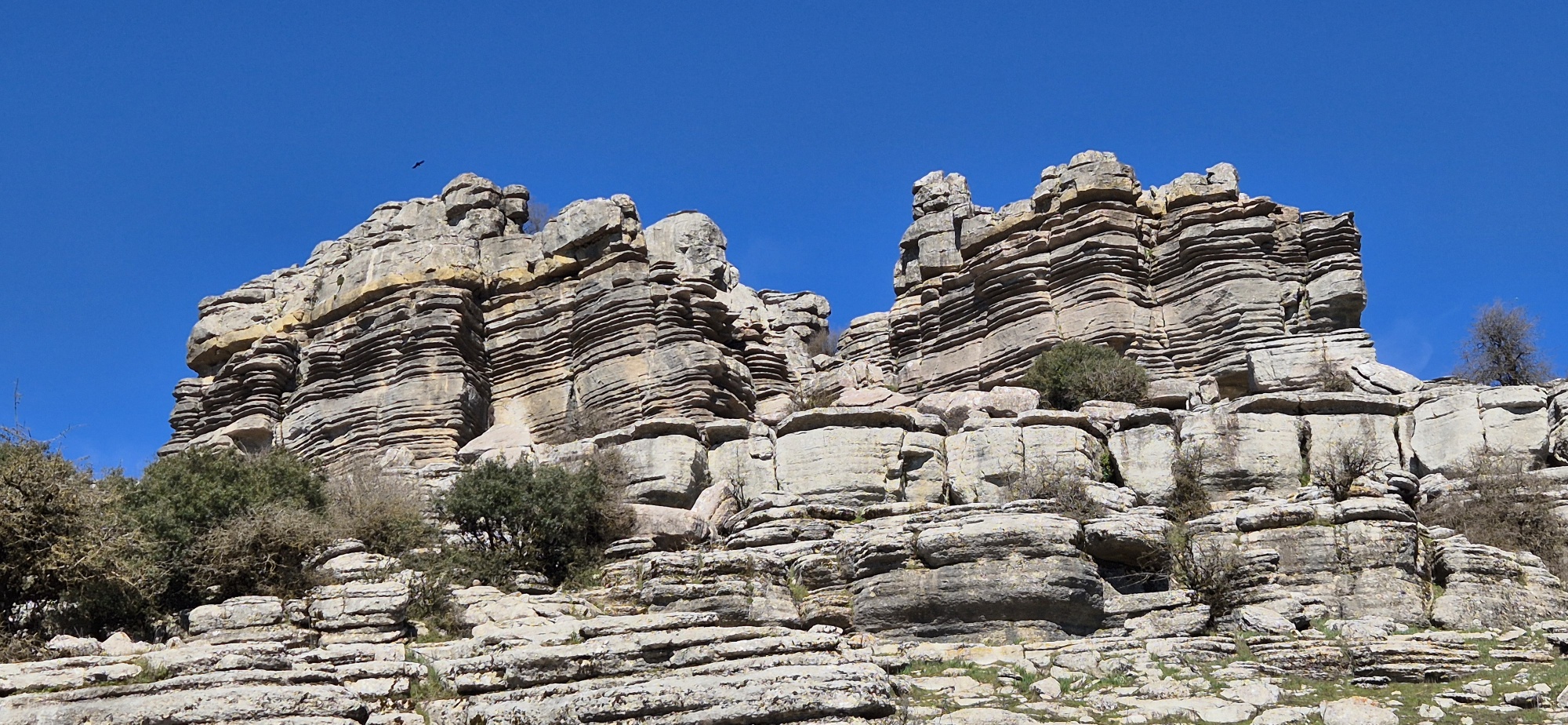 Am Besucherzentrum vorbei steige ich auf einen Felsrücken hoch. Von hier habe ich eine tolle Sicht bis Malaga, welches ca. 50 Kilometer entfernt ist. Dann gehe ich nochmals zu den schon am Samstag besuchten beeindruckendsten Felsformationen, wo ich mich tagelang aufhalten könnte. Nach jeder Windung eröffnen sich neue Blickwinkel. Auch ist es heute mit wenigen Besuchern sehr angenehm.