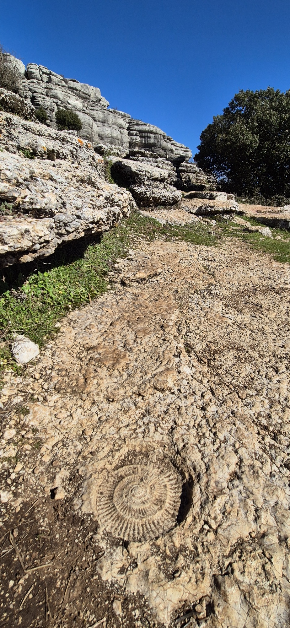 Fast ganz oben sehe ich wie schon am Samstag den „El Tornillo“ der ausschaut, als ob man flache Steinplatten übereinander gestapelt hätte. Danach noch einen Schwenker nach rechts wo ebenfalls kaum Leute sind. Dort finde ich direkt auf dem Wanderweg eine große Versteinerung… Faszinierend die ganze Gegend.