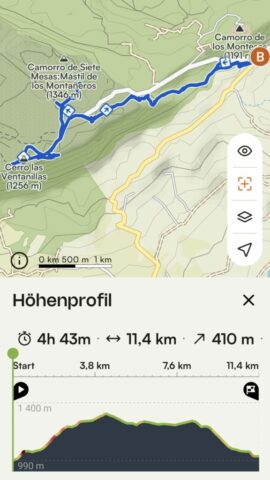 Danach mache ich mich auf den Rückweg und um ca. 15 Uhr bin ich zurück beim Wohnmobil – 11,4 km und 410 Höhenmeter sind so zusammen gekommen.