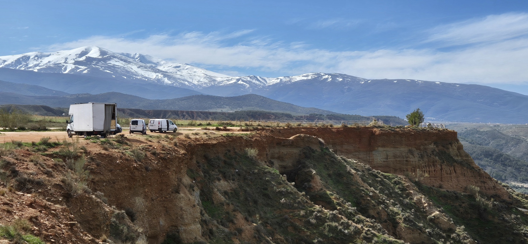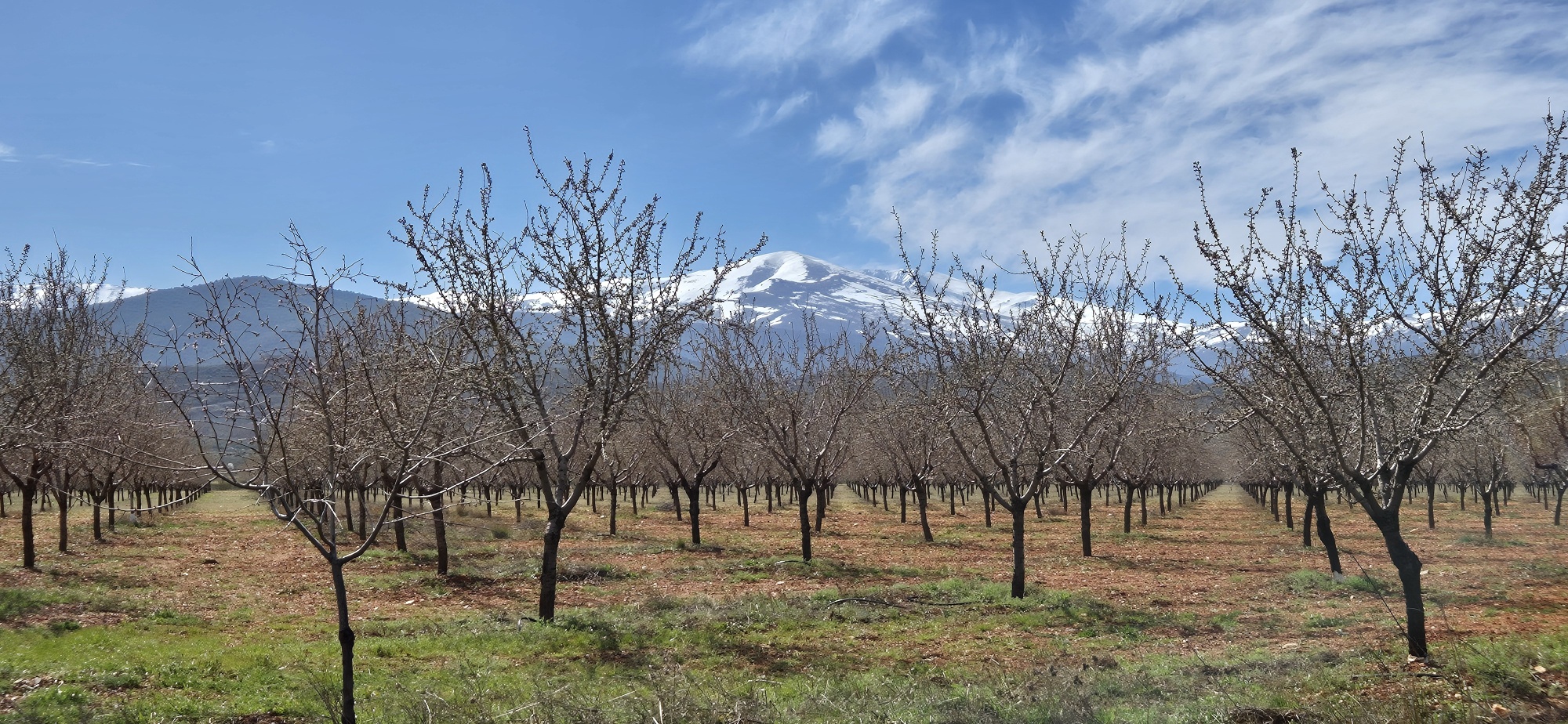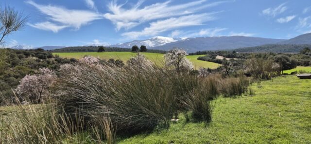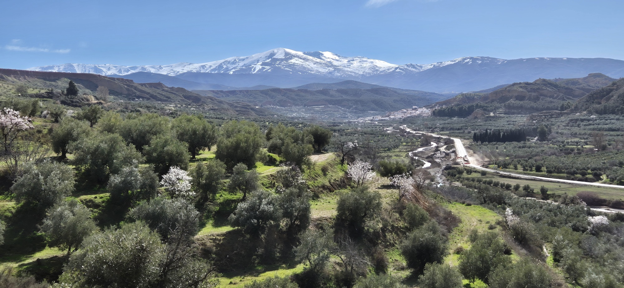 Entlang der Felskante radle ich weiter und denke mir, dass ich heute eine bessere Wahl getroffen habe. Kurz darauf – ja genau – ist die MTB Strecke wieder völlig ausgewaschen und schaut aus wie ein Flussbett. Also wieder – bergauf schieben, bin’s ja schon gewohnt. Aber diesmal ist ein Ende der Schinderei schneller absehbar und dann geht es wieder durch fast endlose Olivenplantagen, dazwischen immer wieder blühende Mandelbäume.