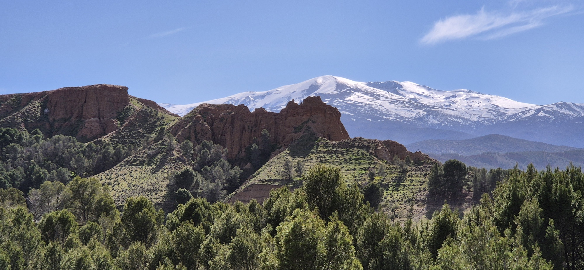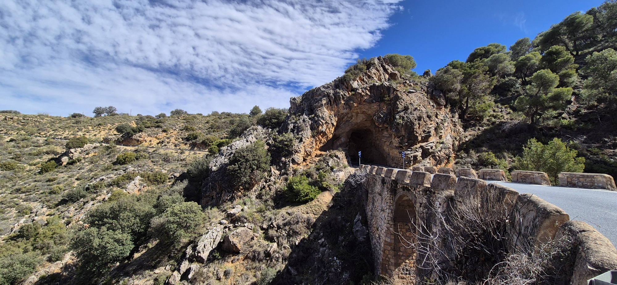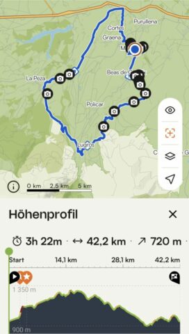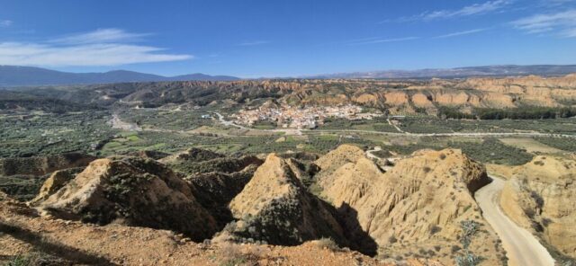 Nach einer längeren Strecke durch einen Wald sehe ich unter mir wieder ein Dorf – La Peza. Hier war ich auch schon vor 2 Jahren übernachtet, hatte aber damals zu wenig Zeit um diese Gegend erkunden zu können. Ich fahre weiter und es tauchen wieder imposante Felsen auf, immer wieder rauf und runter – ein gutes Intervalltraining. Zum Schluss nochmals eine Schiebestrecke, aber heute hat es sich in Grenzen gehalten. Nach den schweren Regenfälle sind zu viele Strecken nicht oder nur sehr schwierig passierbar. Ich werde mich morgen mehr an Feldwegen und Asphalt orientieren, um die ganze Strecke im Sattel bleiben zu können.