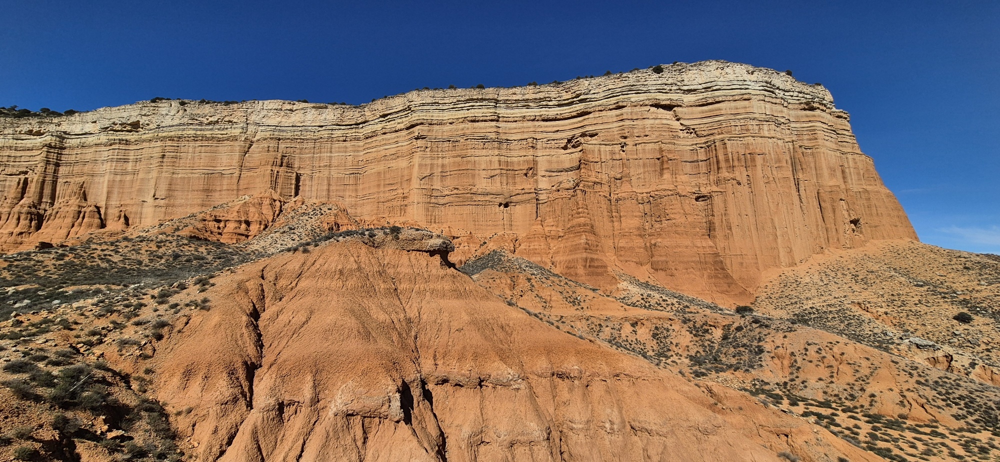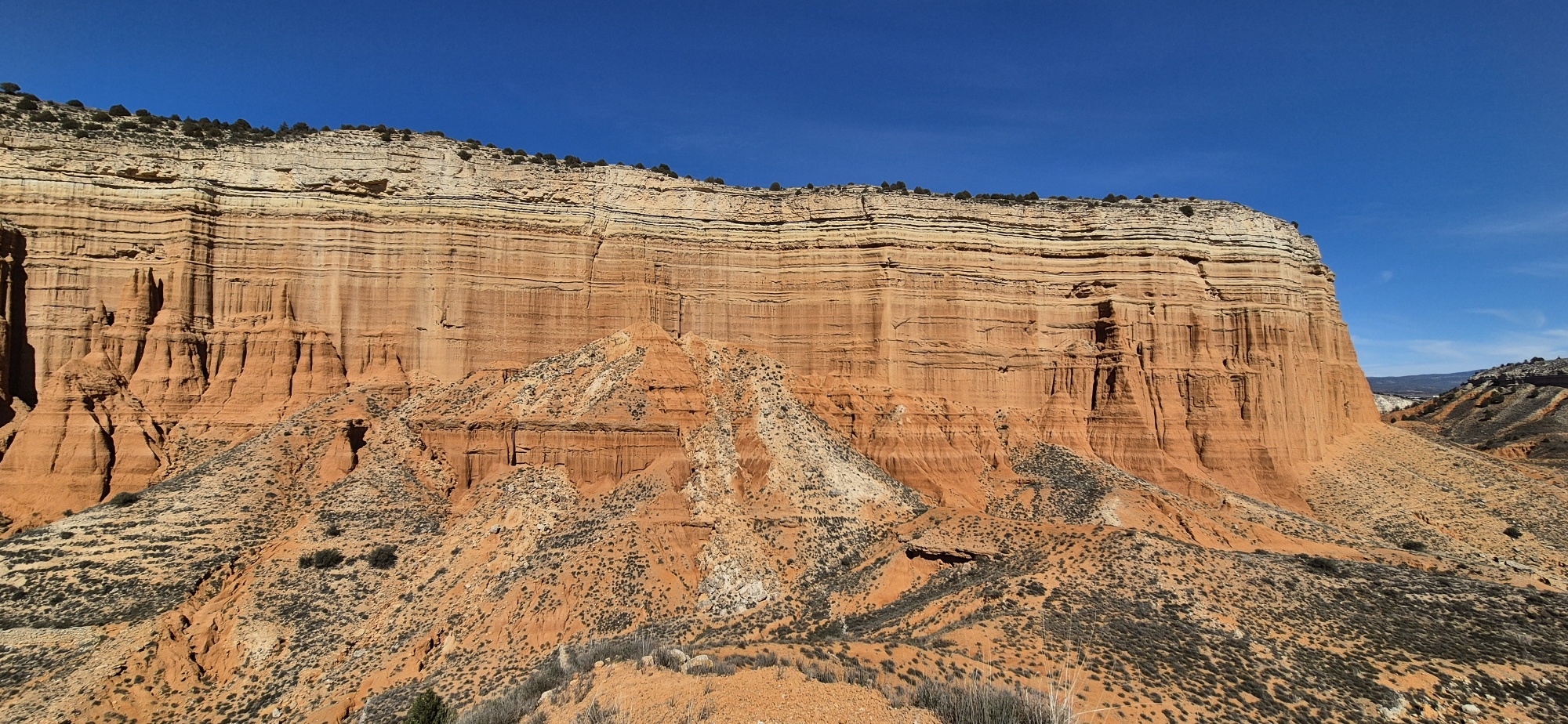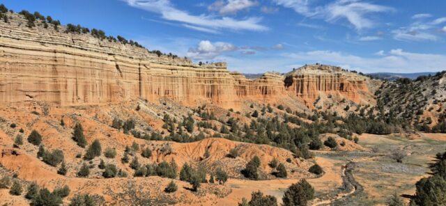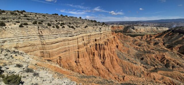 Ich gehe bergauf und hinter der Felswand, welche ich vom Übernachtungsplatz aus sehe, liegt eine weitere Schlucht mit demselben Farbenspiel. So etwas läßt sich auf Fotos nicht wirklich wiedergeben und dazu kommt die völlige Ruhe, überhaupt kein Lärm und nur ganz sporadisch andere Wanderer.