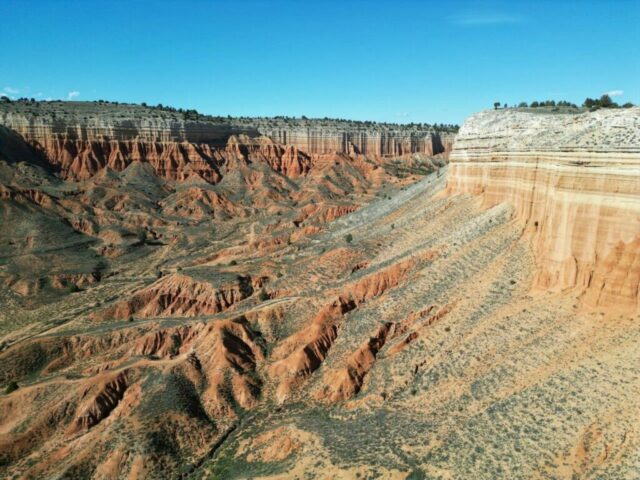 Dann zweige ich von der Hauptstrecke ab und folge einem schmalen Pfad, welcher schlussendlich auf das Ende eines Felsvorsprungs führt. Von hier aus sehe ich schön auf die andere Seite des Canyon und unter mir sind, von hier aus nicht einzusehen, die roten Felswände.
