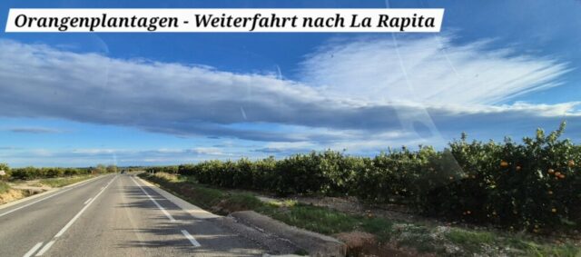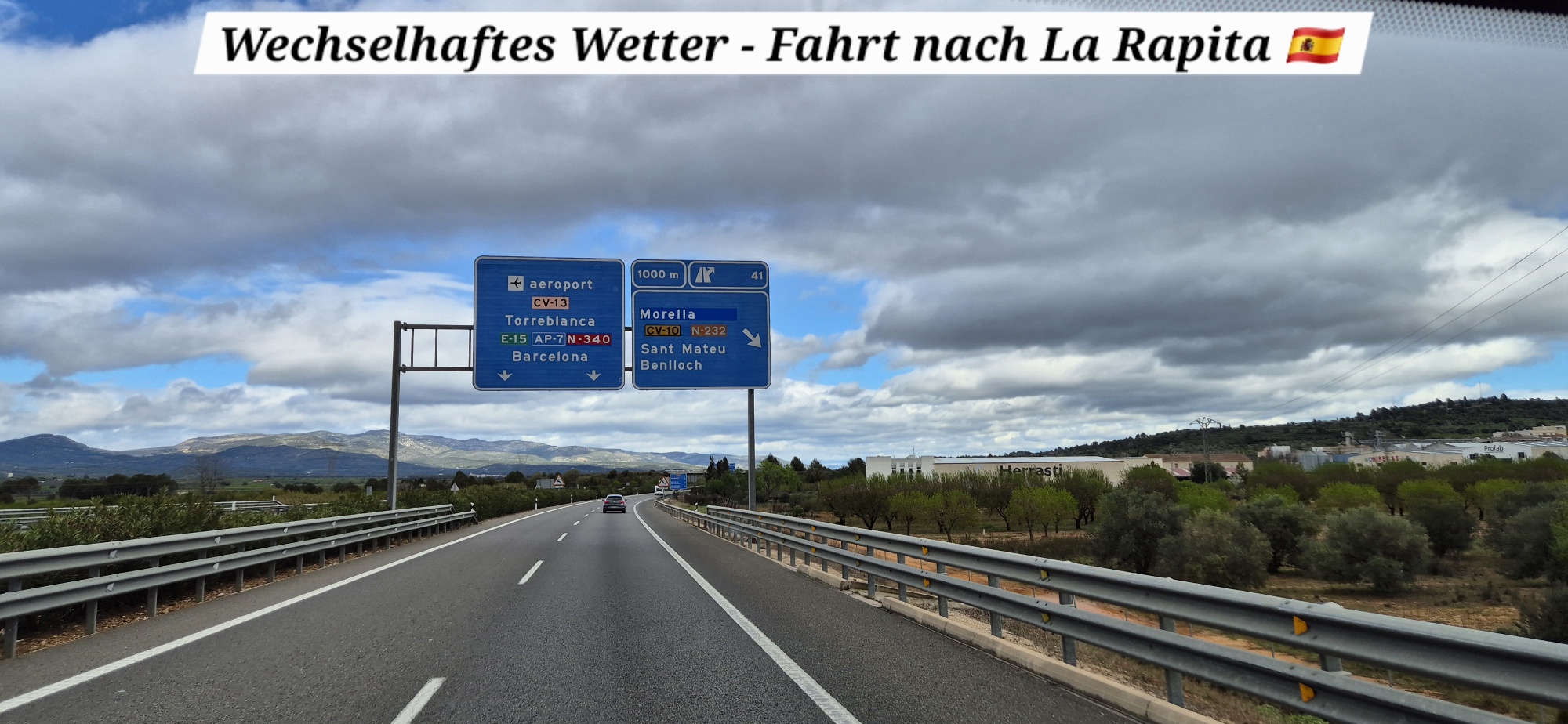 Die heutige Route geht zuerst nochmals 300 Höhenmeter hinauf und der stürmische Nordwind schiebt von hinten richtig an. Dies ist am Dieselverbrauch gut zu merken, besonders auch auf der Strecke hinunter an die Küste. Dann geht es Richtung Osten und nun bekomme ich den Wind von der Seite zu spüren. Beide Hände an Lenkrad helfen, die plötzlich auftretenden Windböen ausgleichen zu können. Der Himmel reißt an der Küste auf, die Wolkenfront schein schon langsam abzuziehen. In Vinaros, welches auf der Strecke liegt, habe ich schon öfters günstig tanken können und auch heute ist dies weit und breit die billigste Tankstelle. € 1,689 kostet der Liter Diesel, an den anderen Tankstellen bis zu € 1,93. 71 Liter für € 120 – es war schon günstiger…