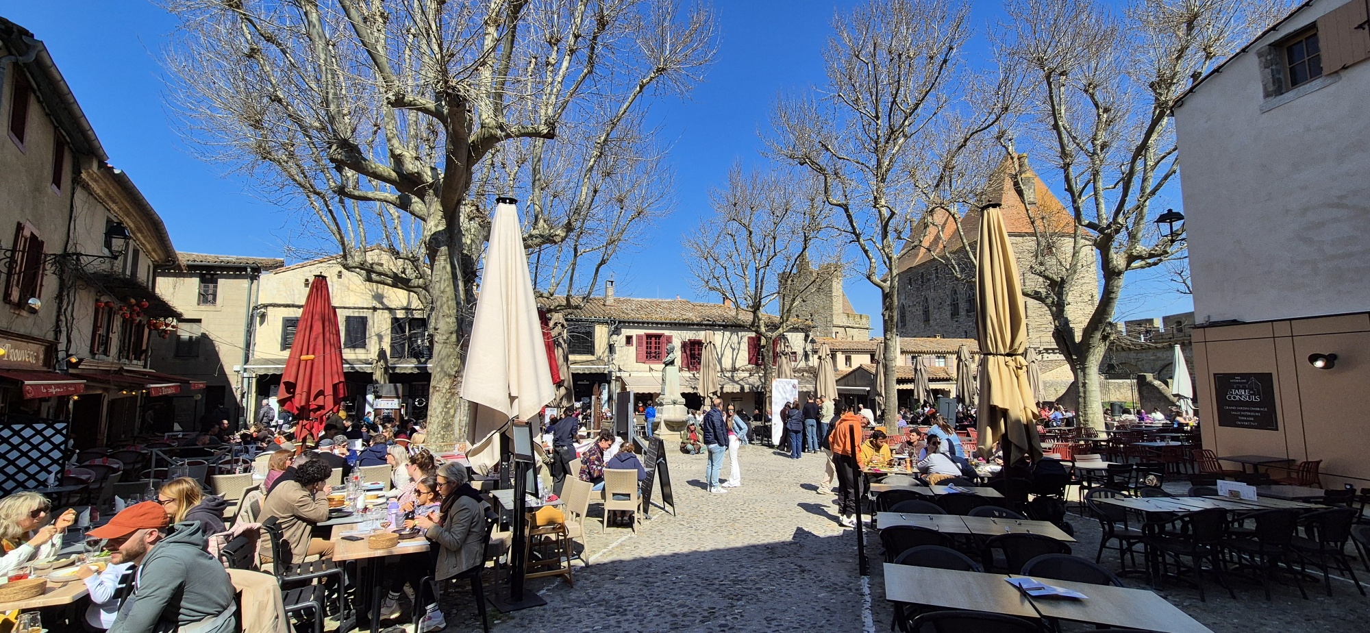 Nach einer Runde durch die Altstadt, wo schon sehr viele Geschäfte geöffnet sind, besuche ich die „Cité von Carcassonne“, eine mittelalterliche, riesige Festung welche schon im 1. Jahrhundert von den Römern gegründet worden ist.
