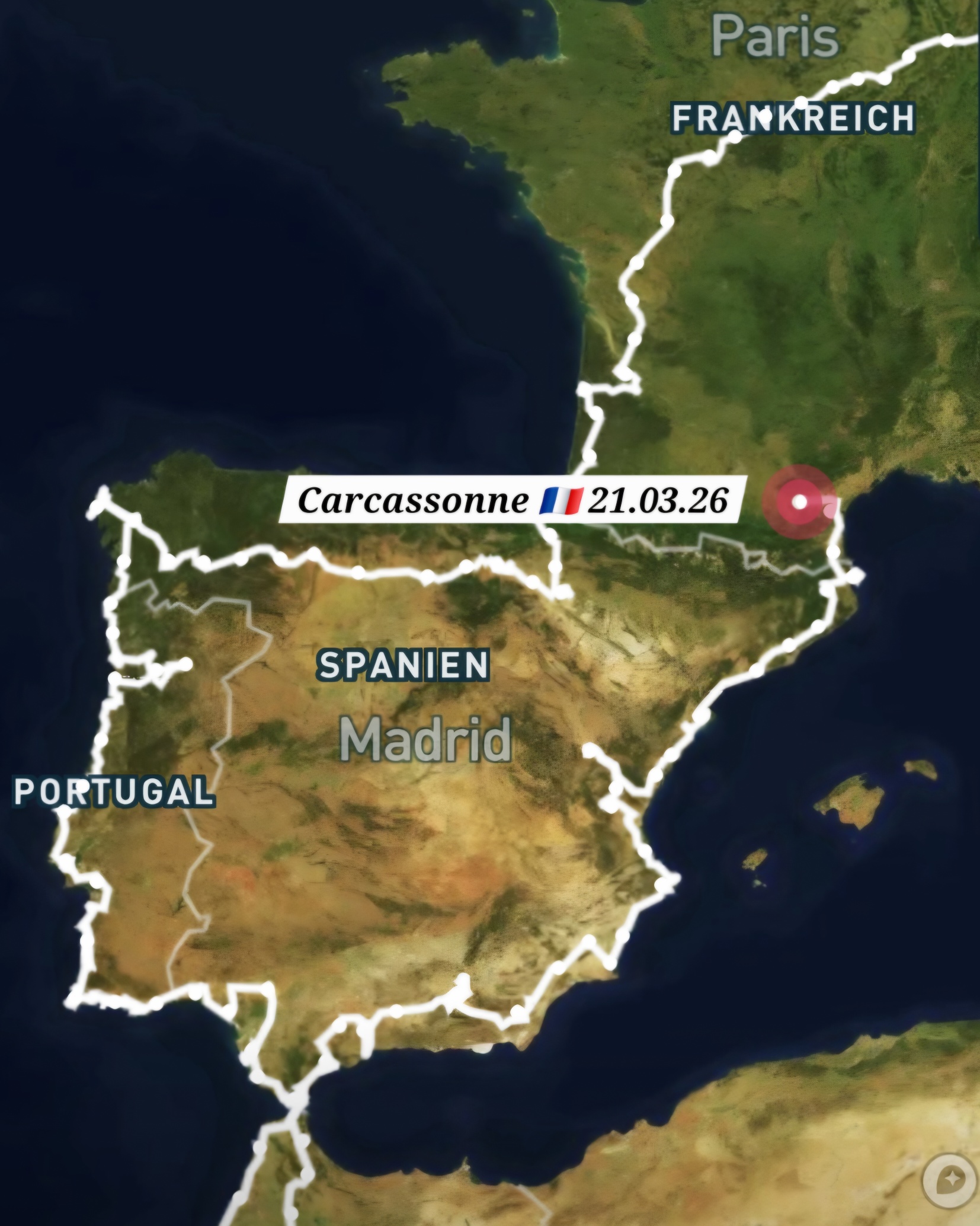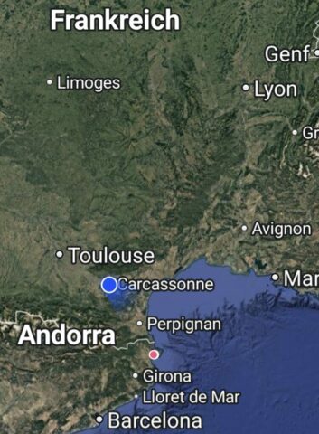 Da ich es nicht eilig habe fahre ich über mautfreie Straßen, es sind von Roses in Spanien nur knapp 200 Kilometer bis Carcassonne in Frankreich und so bekomme ich mehr von der Landschaft mit. Sehr viele Wohnmobile kommen wir entgegen, welche erst jetzt Richtung Süden starten.