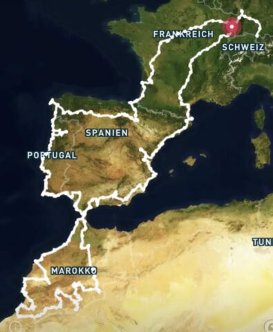 481 Tageskilometer, 13.619 Gesamtkilometer (davon 4.404 in Marokko)